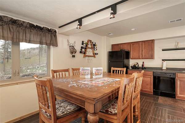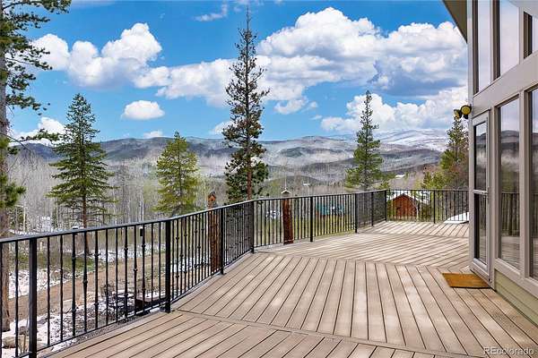 The open-concept main level is filled with natural light from expansive windows that frame forest views and frequent wildlife sightings. Step onto the spacious deck—ideal for morning coffee, evening gatherings, and year-round enjoyment under Colorado’s vast skies.