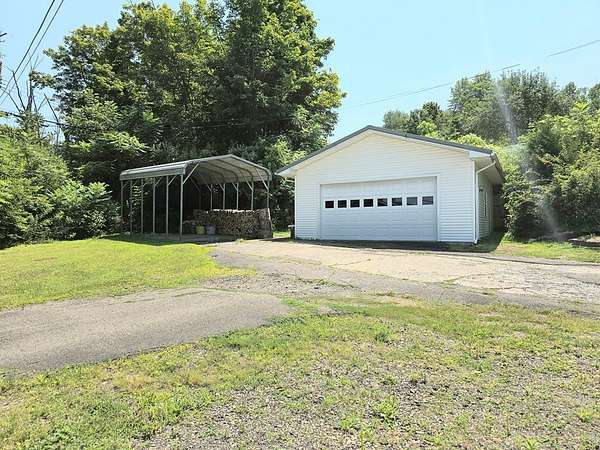 Welcome to this unique property nestled on nearly 3 acres, offering scenic views, a koi pond, and plenty of yard space. This home features 3 bedrooms and 2 bathrooms, including a primary suite with a private bath. First-floor living includes an eat-in kitchen, formal dining room, spacious living room with a bay window, and convenient first-floor laundry. The walk-out finished basement provides additional space for storage, hobbies, or guests. Outside, enjoy an attached 2-car garage, two carports, multiple outbuildings, a paved driveway, and low taxes. The lot offers a great mix of open lawn, woods, and water—ideal for nature lovers, outdoor entertaining, or simply enjoying the peaceful setting. Whether you're looking for room to spread out or a place to unwind, this property offers space, privacy, and flexibility with plenty of potential to make it your own!