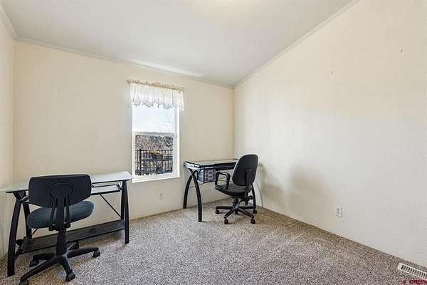 Christina M Rinderle, Durango Land and Homes, C: 970-946-2279, christina@dgohome.com, www.durangolandandhomes.com: Situated on 4.7 acres in Sundance Hills directly backing to over 1000 acres of BLM public lands, the one level property offers a peaceful, private setting with beautiful mountain and valley views framed by mature aspen trees. This home is centrally located just 10 minutes Mercy Hospital, 15 minutes to downtown Durango, and close proximity to La Plata County Airport, as well as your basecamp for adventure with nearby mountain biking trails (Spurline and Sauls Creek), lakes, rivers, and National Forest Land with ample hiking, camping, skiing, fishing, snowshoeing! The 1,484-square-foot home features 3 bedrooms, plus an office, and 2 bathrooms. The primary bedroom includes a full ensuite bath, while the second bedroom offers a walk-in closet. Recent updates include new stucco, new metal roof, new windows, new Trex decking, new water heater, new carpet in the living room, and new vinyl plank flooring in the kitchen and dining area.Forced-air heating keeps the home comfortable during the colder months, and a portable AC unit (included) provides cooling in the summer. The back door opens to natural landscaping and outdoor space to enjoy the serene surroundings. A detached garage and a large, clean storage shed offer ample space for tools, gear, and equipment. A fenced area helps keep deer out, making this an ideal mini-ranchette with potential for horses and chickens.If additional living space is desired, the neighborhood and county allow for the potential construction of an ADU.The home is serviced by the La Plata Archuleta central water system, with an additional on-site well used for landscaping irrigation. The typical monthly base rate for water is approximately $33. FREE high-speed internet is available through Align Tech for relay positioning on the property, and the on-site security cameras convey with the property. This is the ideal setting for privacy and natural beauty with all of the conveniences and amenities the area has to offer!