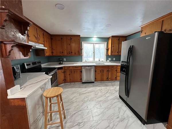 Charming ranch-style home available for rent. This well maintained, renovated property features 3 bedrooms and 2 full baths, beautiful hardwood floors, and a cozy fireplace for comfortable living. The kitchen includes new appliances, and there is a convenient garage for parking and storage. The lower level has additional space. Enjoy a nice patio-perfect for relaxing or entertaining-and the convenience of in home laundry. Located close to school with easy access to nearby amenities. Rent: $3500 per month (Electric included) Lease term 12-24 months, security deposit and references/credit. Availability immediate a wonderful opportunity to enjoy single living in a peaceful Foster setting.