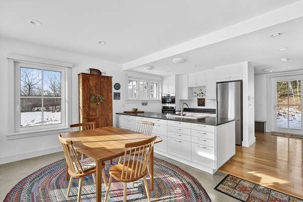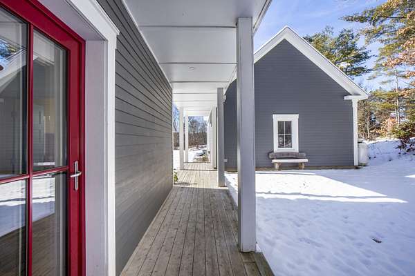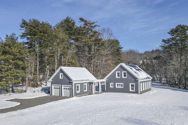 Discover exceptional efficiency, comfort, and ease of living in this GO Logic-design and built passive house set on 10.69 peaceful acres in Newcastle. The verified air-tight insulation, 14'' walls, triple-pane heavy imported windows and doors, and whole-house energy recovery ventilation system all contribute to a quiet, comfortable interior that is the hallmark of Go Logic's building standards. The home was built in 2017 in the style of a cape, combining traditional architecture with modern design that remains in impeccable move-in condition. Facing south, the home maximizes its solar and radiant gain while benefiting from lovely views of the fields dotted with wildflowers or blanketed by snow. The fields are lined by woods offering both pastoral scenery and natural privacy that can be admired from the large windows and patio door or by relaxing in the yard. The house is currently set up for single-floor living, with a second floor inside the building envelope and a stairwell opening that has been framed in, should someone want to add bedrooms or expand the living area. A covered walkway leads you from the front door to the two-car garage that includes an EV car charger powered by the solar array, a workshop area with a small heated and plumbed room, and a black-topped driveway. The 10.69-acre property is comprised of two parcels, should a new owner choose to separate a lot. Situated on a quiet dead-end road, the setting is tranquil and private, yet conveniently located for easy access to nearby villages, including Damariscotta, Wiscasset, Route 1, coastal amenities, and everyday necessities. Newcastle is a highly desirable village in the AOS 93 and Lincoln Academy school districts. Whether you're seeking a primary residence focused on sustainability, or a serene Maine retreat, this property offers a rare combination of modern efficiency, land, and location. The sellers would like to stay in the property until the end of May.