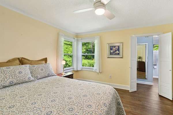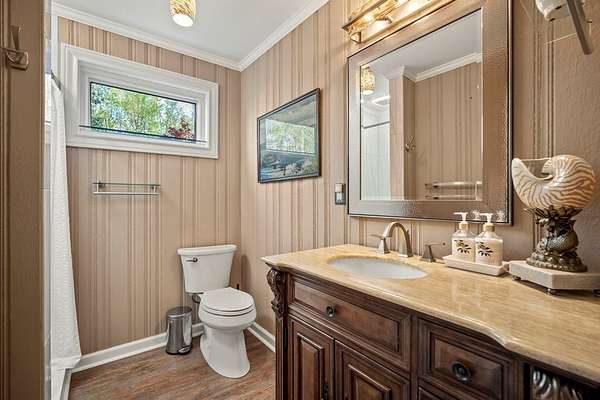 Serenity Place: A Rare Lakeside Sanctuary Just Minutes from Downtown!! Tucked away on over 10 acres of meticulously landscaped and wooded grounds, this extraordinary estate offers the ultimate in privacy, natural beauty, and refined living--all just 15 minutes from downtown Greenville. With more than 400 feet of pristine lake frontage, a sparkling stream, cascading waterfall, and abundant wildlife, the setting feels like a secluded retreat, yet remains effortlessly close to the city. The main residence features 4 spacious bedrooms and 4 full bathrooms, with thoughtful design elements that showcase views of the lake and surrounding forest from nearly every room. The living room exudes warmth and character, centered around a grand fireplace that invites cozy evenings and quiet conversation. In the dining room, sweeping lake views create a stunning backdrop for everyday meals and special gatherings alike. Step outside to the expansive deck and take in panoramic vistas of the water, or wander down to your private dock--perfect for fishing, kayaking, or simply soaking in the peaceful beauty of the lake. Nestled among the trees, a charming artist's cottage offers a quiet haven for creative pursuits, meditation, or guest stays. As evening falls, gather around the fire pit patio, where the gentle sounds of the nearby stream and the crackle of a fire set the tone for unforgettable nights under the stars. Meander along winding paths and let yourself get lost in the chorus of birdsong that fills the air. From morning coffee on the deck to golden-hour strolls along the shoreline, every inch of this property invites you to slow down and savor the serenity that surrounds you. Blending timeless luxury with the tranquility of a private nature preserve, this one-of-a-kind lakeside retreat offers a lifestyle where every day feels like a getaway.