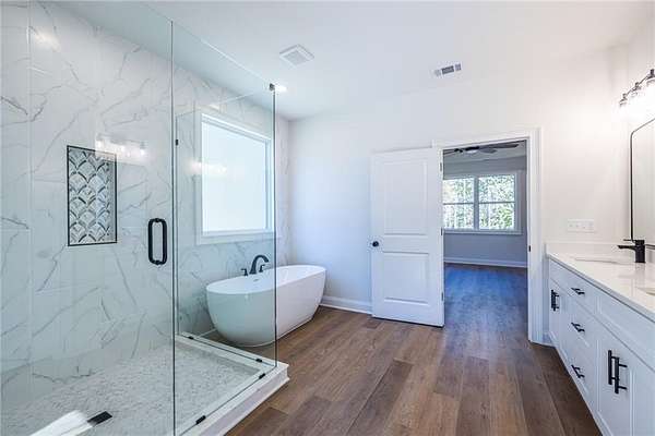 Bright, spacious, and brand-new construction situated on 10.5 acres. The main floor features 3 bedrooms and 2.5 baths, including a large primary suite with a spa-like bath and a walk-in closet. The open living area, modern kitchen, and seamless flow to the large, private back deck make it a perfect space for cooking and entertaining friends and family. Upstairs, you will find a huge bonus room, a fourth bedroom, and a full bath. Downstairs, the basement is partially finished, featuring a fifth bedroom and another full bathroom, providing everyone with ample space to spread out. This is the home you have been dreaming of- move-in ready! This home is located just minutes from Downtown Dallas, the Silver Comet Trail, and just around the corner from Three Strands Vineyard and Winery. The owner is offering $5000 to be applied toward customizing the primary closet. You may receive up to $15,000 in lender credit when you choose to work with our preferred lender.