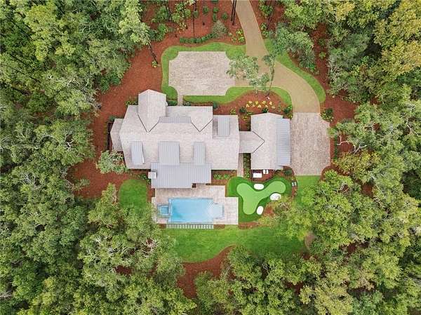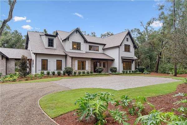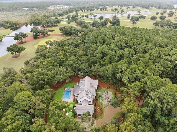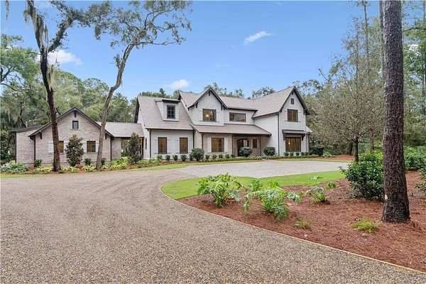 Experience elevated living in the heart of the exclusive Frederica Township--a premier neighborhood known for its privacy, beauty, and timeless charm. Set on 2.22 acres, this architectural gem offers 5,296 square feet of refined living space where thoughtful design and natural elegance come together in perfect harmony. Tucked at the end of a private cup de sac, this open-concept home has a spacious living and dining space that is bathed in natural light and centered around a sleek fireplace -- designed for both upscale entertaining and relaxed everyday living along with warm Western Red Cedar accents that set a striking tone. The main level boasts a tranquil primary suite with spa-caliber finishes, along with an additional guest suite offering flexibility for visitors or multigenerational living. Upstairs, three spacious bedrooms each feature their own private en-suite bath, ensuring comfort and privacy for all. Step outside to your own resort-style escape: an expansive patio with a tongue-and-groove wood ceiling, a fully equipped outdoor kitchen, and a sparkling pool with tanning shelf and hot tub--all surrounded by the serenity of lush, private grounds. With three garage spaces, high-end finishes throughout, and a setting that balances luxury with laid-back Lowcountry living, this home in Frederica Township delivers an unparalleled lifestyle. Built by Flanagan Development, one of the most sought after luxury builders in the area.