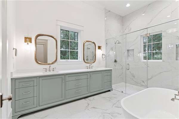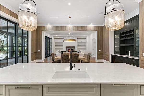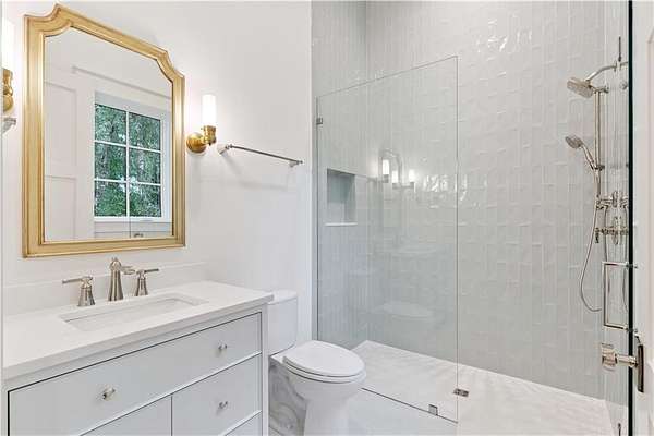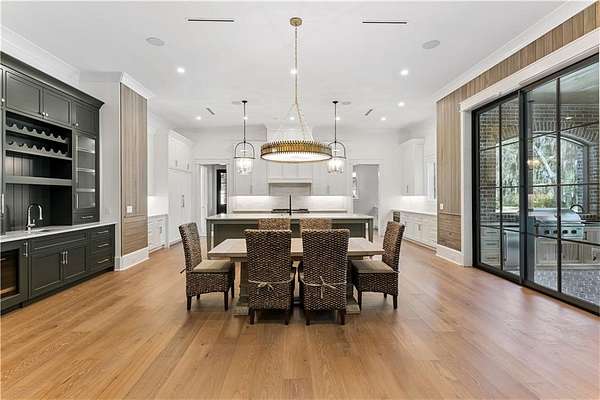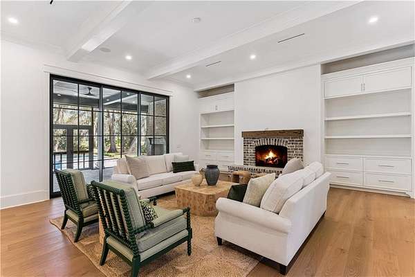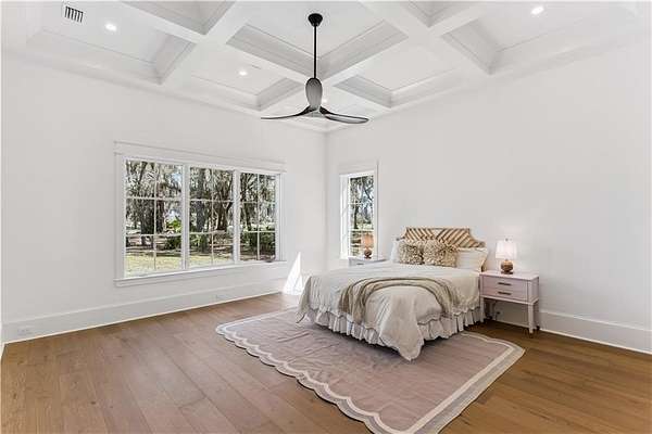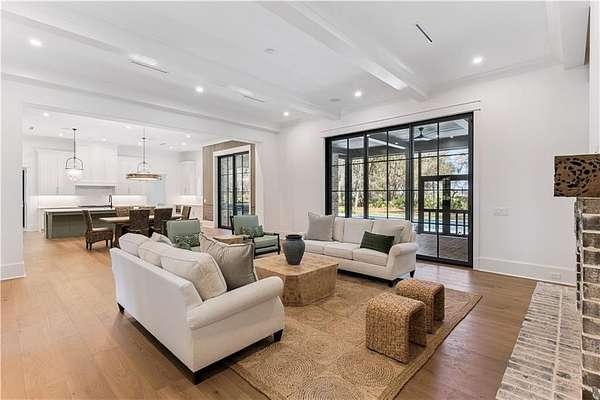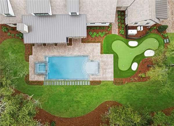 Incredible golf course, lake, and marsh views from one of the best backyards in Frederica! Inquire about the significant Frederica Golf Club membership incentive available with this home! Experience elevated living in the heart of the exclusive Frederica Township - a premier neighborhood known for its privacy, beauty, and timeless charm. Set on 2.22 acres, this architectural gem offers 5,296 square feet of refined living space where thoughtful design and natural elegance come together in perfect harmony. Tucked at the end of a private cup de sac, this open-concept home has a spacious living and dining space that is bathed in natural light and centered around a cozy fireplace — designed for both upscale entertaining and relaxed everyday living along with warm Western Red Cedar accents that set a striking tone. The main level boasts a tranquil primary suite with spa-caliber finishes, along with an additional guest suite offering flexibility for visitors or multigenerational living. Upstairs, three spacious bedrooms each feature their own private en-suite bath, ensuring comfort and privacy for all. Step outside to your own resort-style escape: an expansive patio with a tongue-and-groove wood ceiling, a fully equipped outdoor kitchen, and a sparkling pool with tanning shelf and hot tub—all surrounded by the serenity of lush, private grounds. With three garage spaces, full home generator, high-end finishes throughout, and a setting that balances luxury with laid-back Lowcountry living, this home in Frederica Township delivers an unparalleled lifestyle. Built by Flanagan Development, one of the most sought after luxury builders in Coastal Georgia.