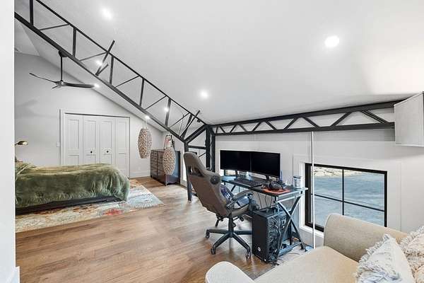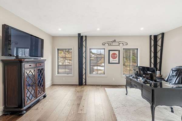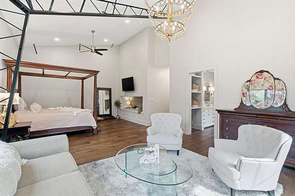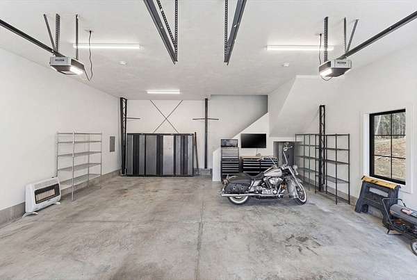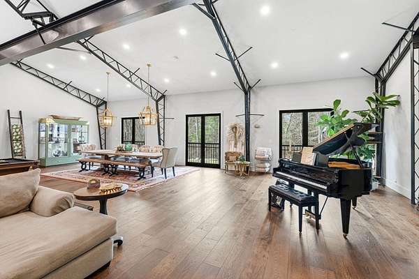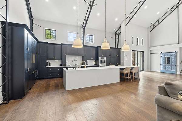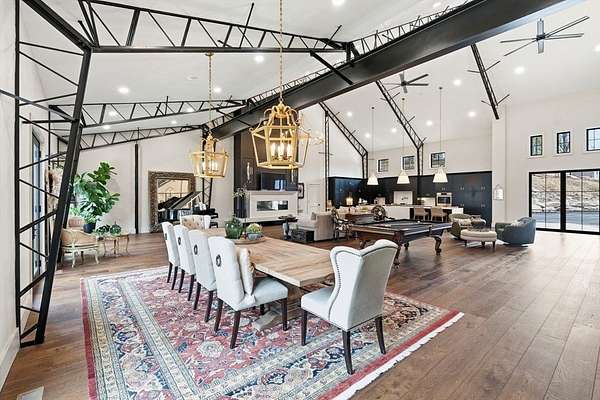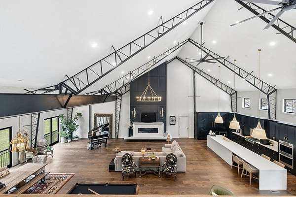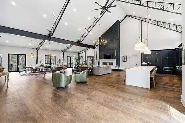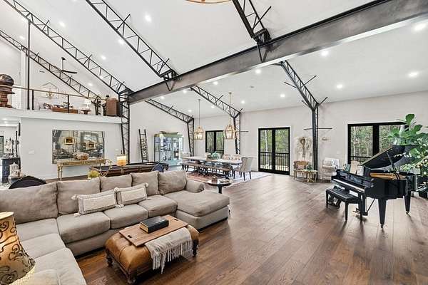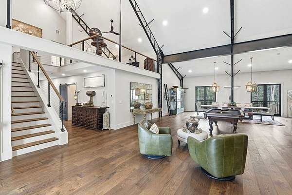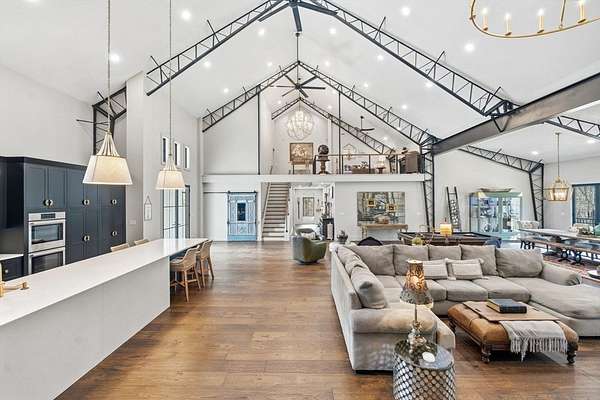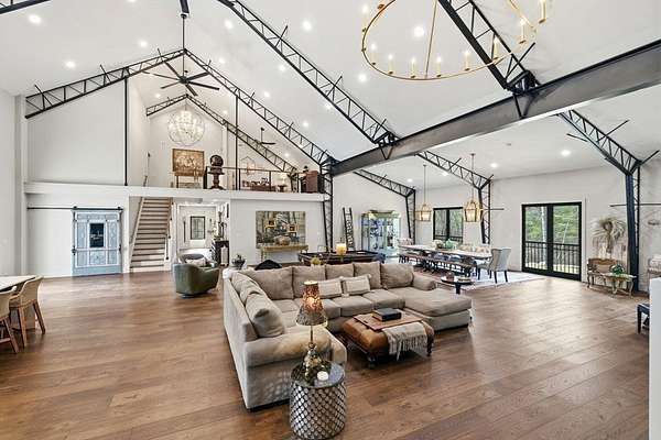 Welcome home to this 13+ acre private retreat offering serenity and natural beauty. Featuring a stunning 5,861 sq. ft. Barndominium, blending modern luxury with open-concept living. The first floor is anchored by a massive 2,182 sq. ft. Great Room featuring 27' ceilings. The gourmet chef's kitchen showcasing a 17' island with dual dishwashers and a versatile 12'x7' pantry. The first-floor primary suite offers a 27'x16' bedroom with cozy sitting area, a spa-like bath with double vanity, soaking tub, and glass-enclosed shower, along with an oversized walk-in closet with laundry area. A study and half bath complete the main level. Upstairs, a mezzanine overlooks the Great Room, leading to an en-suite bedroom with additional laundry area, another bedroom, and a full common bath. Above the garage, an additional 732 sq. ft. awaits your finishing touches. The home is prepped for a whole-house generator, well water, and space for future solar-making it ready for efficient green living!