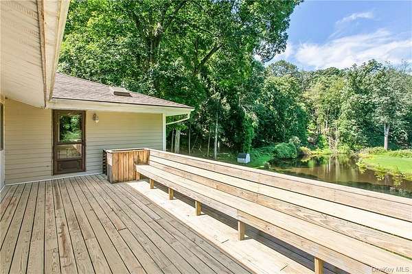 Welcome to this spacious 4 Bedroom, 4 Bath Ranch with a picturesque setting and a very convenient location near Katonah offering shopping, restaurants and train. Close to 684 and Saw Mill River Parkway. Enjoy the pond view and wildlife from the deck. Features include a vaulted Living Room with brick fireplace, Dining Area with slider to deck, Eat in Kitchen with granite countertops, Primary Bedroom with pond view, Bath and door to deck, Bedroom with private Bath, Spacious Lower Level includes Large Family Room with slider and pond view, second Family Room or Home Office with door out, Bath and second Kitchen. Beautiful oak floors. Tenant pays for NYSEG electric, oil, propane and garbage. Landlord pays for snow plowing and lawn mowing. Available May 1. Excellent credit report required.