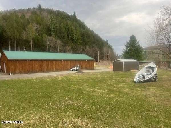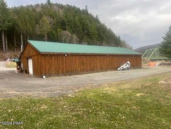 : From Honesdale, PA take RT191N for 34 miles, cross river/191 bridge, property is on the left (see canoes and kayaks).