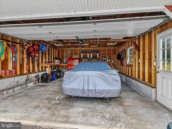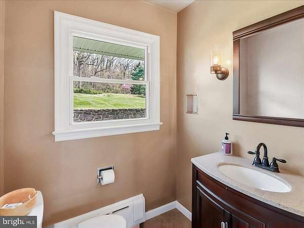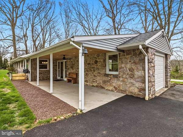 Welcome to 41 Porters Mill Road-a beautifully maintained stone ranch set on two parcels totaling 4.3 scenic acres. Built in 1956 and thoughtfully updated throughout, this 3-bedroom, 2.5-bath home blends timeless character with modern comfort in a peaceful, rural setting. Step inside to an inviting open layout featuring refinished hardwood floors and a warm, stone-faced fireplace anchoring the living room. The heart of the home is the stunning, fully updated kitchen, complete with rich walnut-stained cabinetry, Quartzite countertops, a tile backsplash, and a large island with seating. High-end appliances include a black stainless Bosch induction range and refrigerator, a paneled Bosch dishwasher, GE microwave, and a Kohler farmhouse sink. Durable 12x24 vinyl composite tile flooring completes the space, making it both stylish and functional. The main level offers three comfortable bedrooms, a full bath with granite-topped vanity and tile surround tub/shower, and a convenient powder room. A breezeway connects the kitchen to the attached one-car garage, adding everyday practicality. The finished lower level expands your living space with a cozy family room, full bathroom, laundry area, den or flex room, and direct outdoor access-plus a large storage area. Outdoors, the property truly shines. Enjoy a large open yard, charming stone walls, a cozy back porch, and a private nature trail winding through the wooded portion of the property. Additional features include a detached two-car garage, a studio or playhouse with storage, and a separate storage shed-offering endless possibilities for hobbies, work, or recreation. Major system updates provide peace of mind, including replacement windows, a new roof (2021), septic system (2017), hot water heater (2021), central air (2024), and an oil furnace with hot water baseboard heat. Every aspect of the home has been meticulously maintained. Tucked away in a quiet setting yet conveniently located near Route 100, this property offers easy access to Exton, Pottstown, and King of Prussia. A rare opportunity to own a thoughtfully updated home on expansive, picturesque land-this is one you won't want to miss.