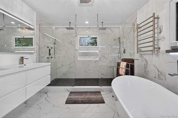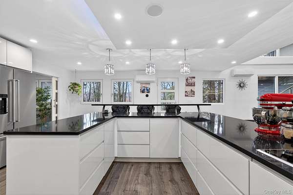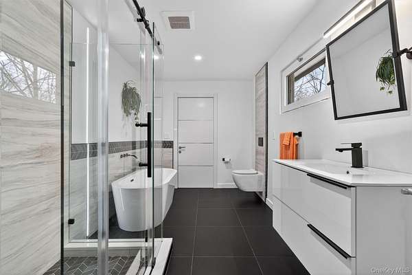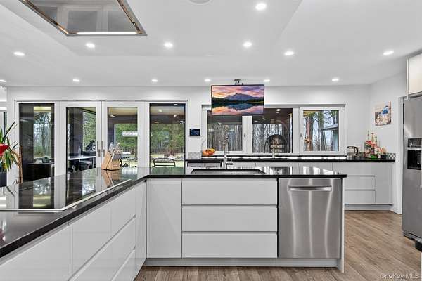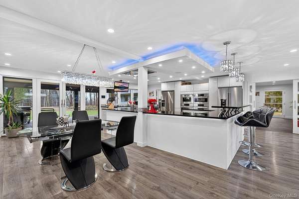 The Ultimate Smart-Home Sanctuary - Forget everything you know about ranch-style living. This five-bedroom, five-bathroom Warwick estate was entirely rebuilt using premier materials and high-efficiency techniques. Nestled on nearly four private, timbered acres, the home offers 4,740 square feet of open-concept living designed for the modern entertainer. The tech suite is unmatched: a gated entrance with intercom, comprehensive security, and climate-controlled comfort via high-efficiency mini-splits and radiant heat. The "green" footprint is bolstered by owned solar panels and specialized European windows. From the epoxy-floored garages with EV hookups to the outdoor firepit and covered BBQ terrace, every detail has been considered. You're only 20 minutes from major medical hubs and the region's best attractions-from the Appalachian Trail to Woodbury Common. This isn't just a house; it's a high-performance gateway to the Hudson Valley lifestyle.
