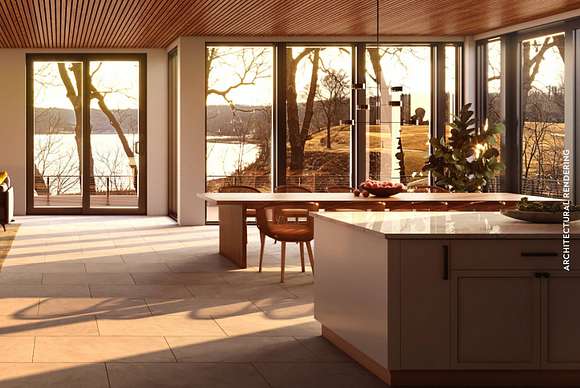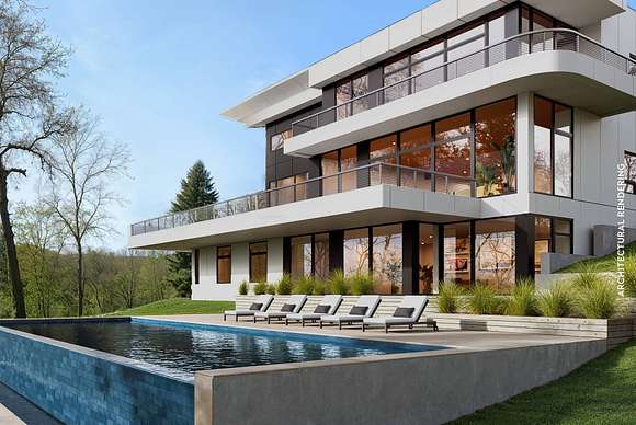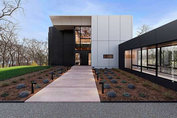 A one-of-a-kind modern masterpiece overlooking Stony Brook Harbor, this new construction home with its striking design is a beautiful juxtaposition of its natural surroundings. Designed by visionary architect, Bob King, this home is a perfect blend of industrial strength and modern elegance. The only home in the region that is wrapped in high-performance aluminum composite paneling, the exterior is not just stunning, it is virtually maintenance-free and engineered to stand the test of time. Spanning over 6,500 interior square feet across three floors, there are five bedroom, five bathrooms, a magnificent column free 50ft x 40ft great room, lower lever with walk-out deck, wine cellar, panic/safe room, and a futuristic glass enclosed link that seamlessly connects the main residence to the four-car garage. The layout has been thoughtfully designed for both form and function. Perched on a hill near the Stillwater Road cul-de-sac, the lot is uniquely positioned to have a southern exposure with breathtaking water views which is extremely rare on the north shore. Benefits of a southern exposure on this part of Long Island include increased natural light throughout the day and less wear and tear on the exterior of waterfront homes from harsh weather. Whether you enter through the front door or use the glass link, you're immediately greeted by an expansive great room with an open kitchen / dining area, fireplace, custom 10 ft windows, massive wraparound terrace, and gorgeous views of the harbor and Nissequogue golf course. On the second floor there are a total of 3 bedrooms, each with its own ensuite bathroom. The primary includes a large walk-in closet, floor to ceiling windows, and a wraparound balcony. The lower level features a beautiful open room with fireplace that can be used as a rec room, home theater, gym, etc. There are two additional bedrooms with water views, a full bathroom, panic room / home safe, and a wine cellar. This level also leads out to the deck where plans are in place for the new homeowner to finish an outdoor entertainment space to their liking which can include a sauna, hot / cold plunge, and an infinity pool. All major systems are in place: power, radiant heated floors, plumbing, electrical, insulation, and ductwork, with a fully completed exterior. What remains is the exciting part: bringing the new homeowner's personal vision to life. Interior and pool renderings offer a glimpse of the extraordinary possibilities ahead. Listing ID#920832