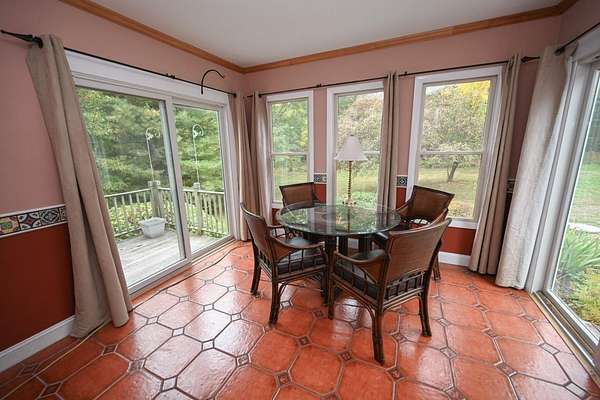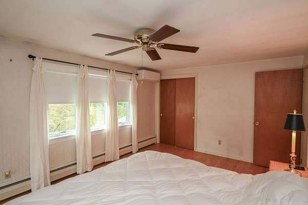 Discover this charming 4-bedroom, 1.5-bath Garrison nestled in one of Hampden's popular neighborhoods. Inside, you'll find hardwood floors throughout much of the home, a bright and welcoming 4-season sunroom overlooking the expansive backyard, a large living room with wood burning fireplace, and a cozy den perfect for relaxing or working from home. The kitchen features a wall of cabinets for lots of storage and a new refrigerator. Thoughtful built-ins provide character and functionality throughout the main floor. The updated full bath, spacious master bedroom, and versatile second bedroom (currently used as a dressing room/closet), along with two additional bedrooms, provide ample space. Three heat pumps add comfort throughout the year. The basement expands your options with a partially finished room, a great workshop area, and convenient walk-out access to the backyard. An attached 2-car garage adds even more practicality. Step outside to your own private oasis: 1.71 acres of in-town living with a beautifully landscaped yard and an additional cleared area that feels worlds away. All this, just minutes from Hampden amenities and I-95.