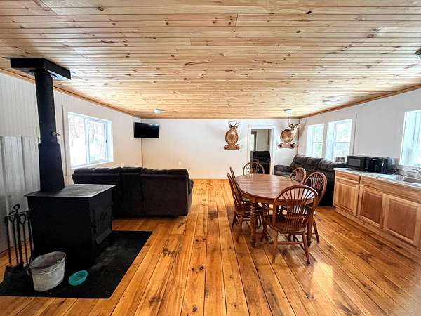 42 acres Hunting Land for Sale with Cabin, Russell, NY! Wooded Property with Trails and Pond Bordering Public Land! This property is set up for the outdoor enthusiast! It offers 42 wooded acres with a newly renovated 700-square-foot cabin. Easy access with interior forest trails throughout for hiking, ATV riding or for cutting firewood for your winter's heat. This property borders 1400 acres of public land that allows for hunting and other outdoor enjoyment. This is the perfect low-maintenance base camp and a great location for all your adventures. The cabin is set up with all the basics; it's simple and low maintenance. It offers an open layout with a woodstove, cookstove, refrigerator, and a separate bunk room /bedroom. The interior was just remodeled with new pine ceilings, wall paneling, and pine slab floors. Outside, there is a beautiful screen porch that looks out to the back 40. The cabin has power and high-speed internet, but there is no running water or septic. Fresh water is brought in for the length of the stay and there is an outhouse. The 42-acre property is mostly all wooded; the forest consists of a mix of pine, spruce, hemlock and northeastern hardwood trees throughout. Access to this property is provided by a town road with over 600 feet of frontage and there is a network of interior trails. The property offers a great mix of topography, and it has frontage on a woodland pond with a creek. The surrounding area offers great opportunities for Snowmobile/ATV riding, Hiking, Camping, Fishing, and Hunting. It borders public land, and just down the road is over 1200 acres of Whippoorwill State Forest. This would make the perfect place to just get away from it all, come visit and explore what this amazing property has to offer! Area features: o 2 miles from a family restaurant/pub. o 5 miles to gas station/convenience store. o 30 minutes to the Adirondacks and the 5 Ponds Wilderness. o 45 minutes to Canada. o 1 hour from Lake Placid, NY.