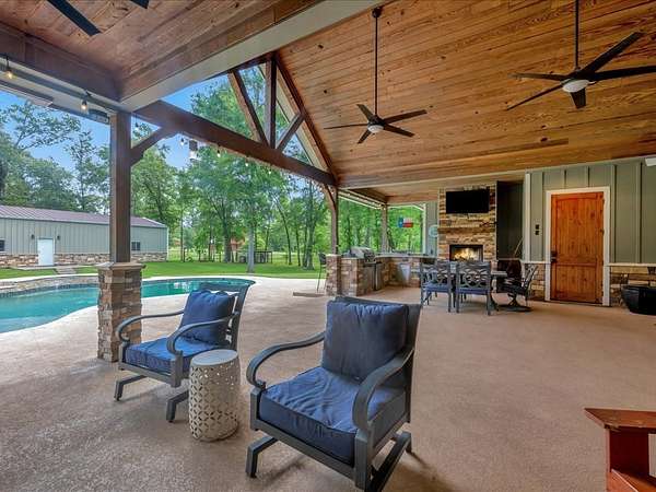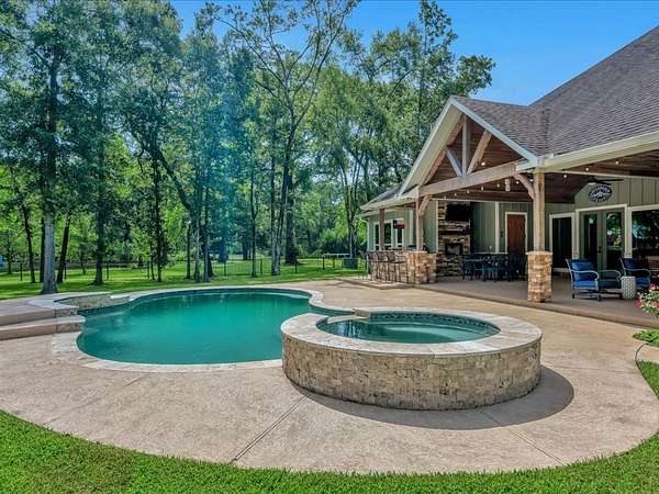 Est $6,417/moBeautiful custom-built 4-bedroom, 3.5-bathroom home with an office, situated on 4 acres in Lufkin, Texas. This property features an open-concept design with a split floor plan and a spacious living area, ideal for family gatherings and entertaining. Enjoy the covered back patio with a full outdoor kitchen overlooking the sparkling pool – perfect for relaxing summer days. Additional highlights include an insulated shop and a mother-in-law suite complete with a full bathroom. Experience peaceful country living with plenty of space and privacy, all while being conveniently close to everything Lufkin has to offer.