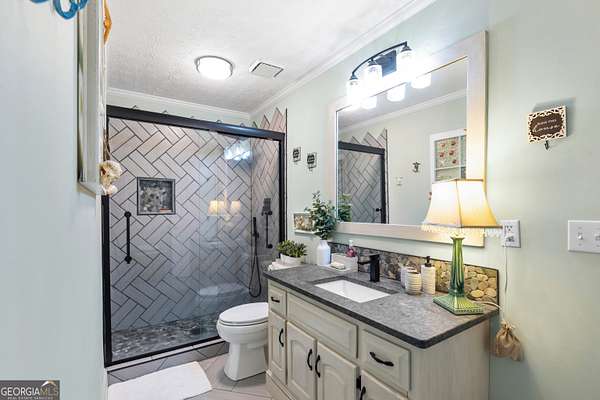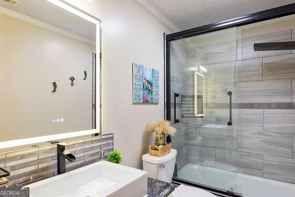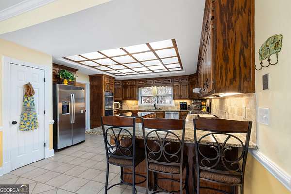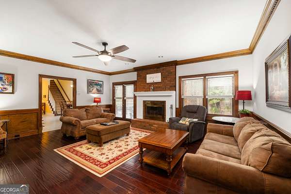 Stunning Four-Sided Brick Home on 2.5 Acres with Resort-Style Saltwater Pool. Welcome home to this beautifully updated four-sided brick estate perfectly situated on 2.5 private acres, less than five minutes from Trilith Studios and just minutes to Peachtree City, downtown Fayetteville, I-85, and Piedmont Fayette Hospital. This exceptional property combines timeless charm with modern upgrades throughout. Enjoy peace of mind with a new roof, all new appliances, newly updated bathrooms, fresh paint, new basement flooring, and a new pool pump and heater, with the pool recently converted to a saltwater system. Take a walk to the back of the property and enjoy the fire pit down by the stream or many other possible outdoor activities. A welcoming rocking-chair front porch leads into a bright foyer flanked by formal living spaces, including a separate dining room and a spacious family room featuring a beautiful brick fireplace and well-maintained hardwood floors throughout the main level. The massive kitchen boasts an abundance of cabinetry, brand-new appliances, and ample space for entertaining. The owner's suite on the main level offers a private retreat with a custom walk-in closet and a fully updated ensuite bath featuring a soaking tub, tiled walk-in shower, and double vanities. Two staircases-one at the front and a hidden rear staircase-lead upstairs to a large bonus room with an updated half bath, ideal for an office, workout room, or additional living space, along with three additional bedrooms and two updated full baths. The handicap-accessible finished basement offers incredible versatility with a full kitchen, bedroom, updated full bath, family room, utility sink, and ample storage-perfect for an in-law suite, teen space, or income-producing rental. Step outside to your private backyard oasis featuring a stunning in-ground PebbleTec and gunite saltwater pool with hot tub spillover, fully fenced for privacy, and a massive back deck ideal for grilling and summer evenings. This home offers exceptional space, thoughtful updates, and an unbeatable location with no HOA-truly a rare find.