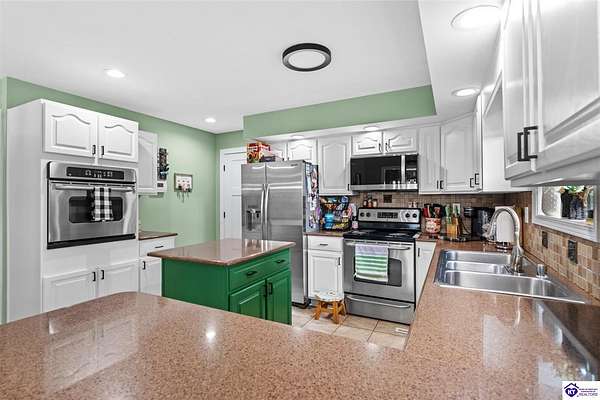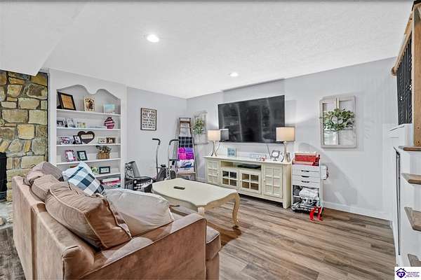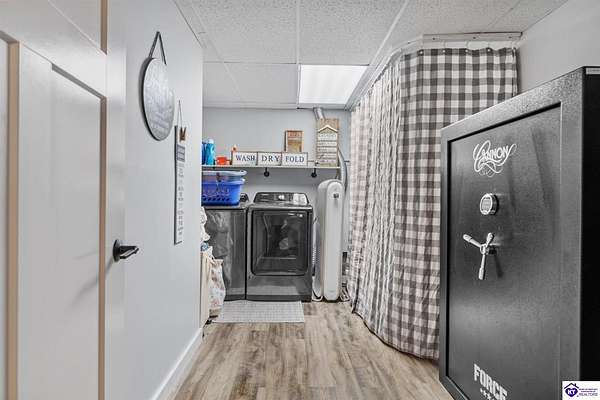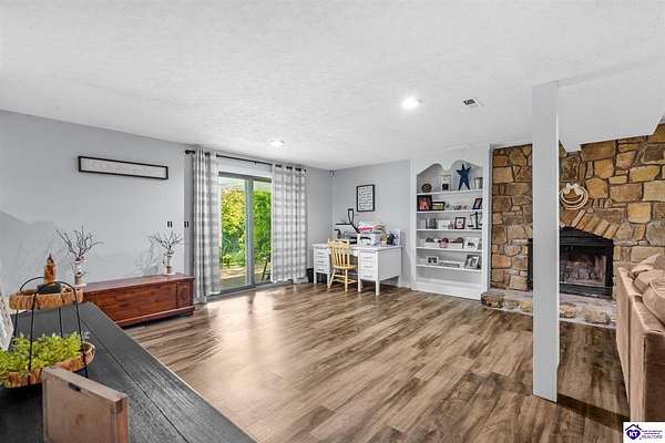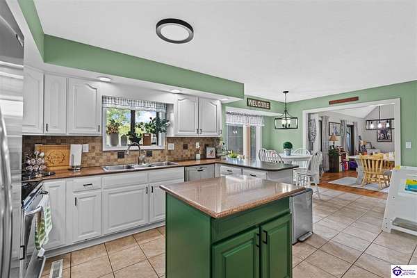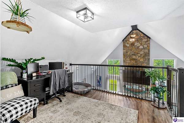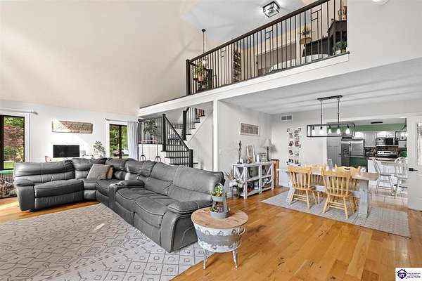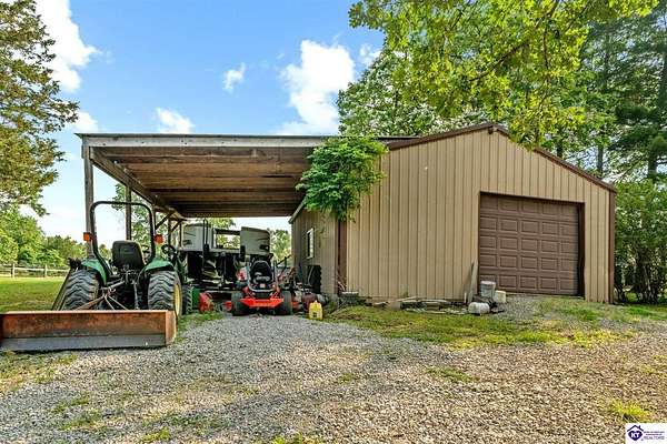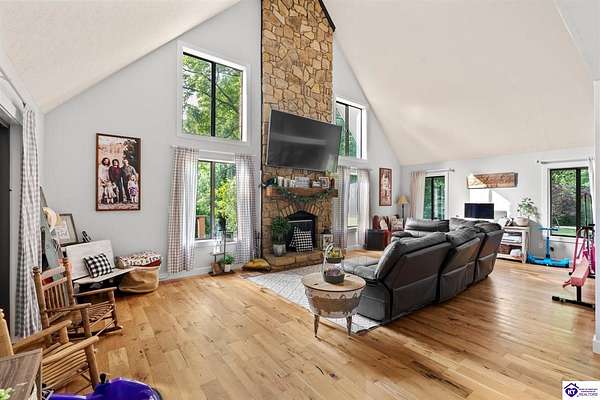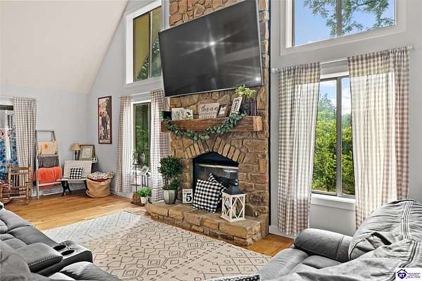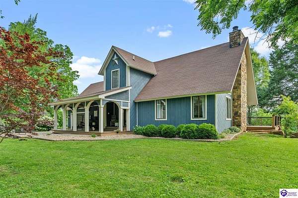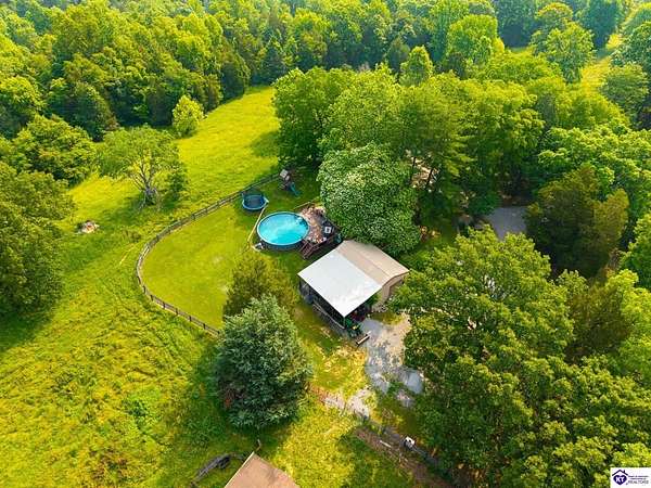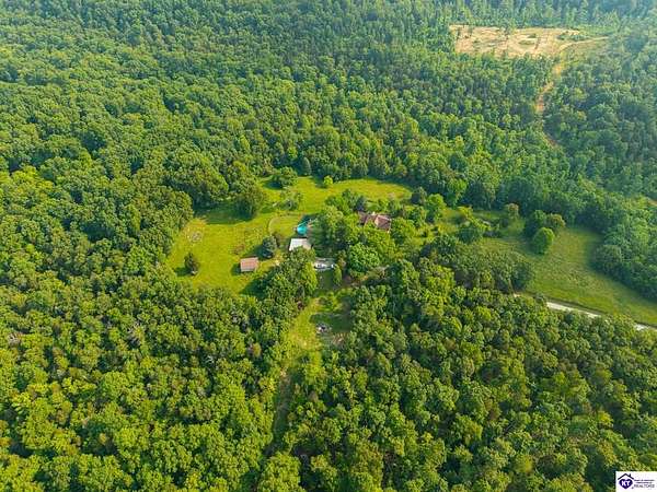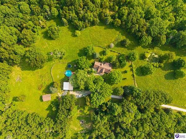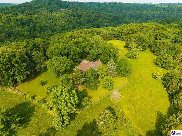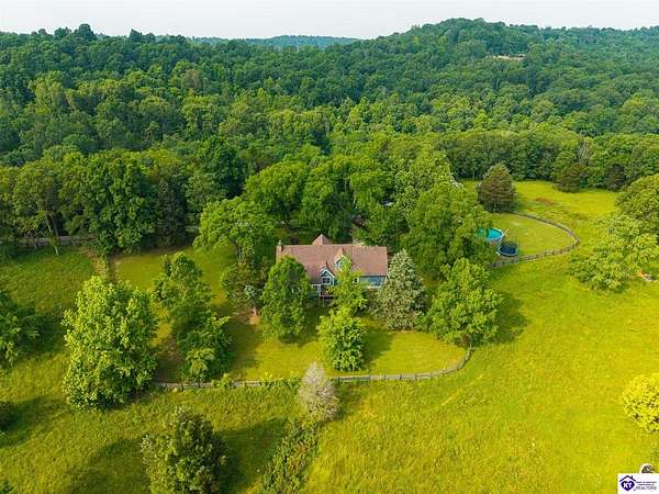 Experience refined country living at 410 Cedar Flat Road--your secluded 36.84-acre estate in the heart of Meade County. Surrounded by rolling farmland and mature trees, this property offers an unmatched blend of privacy, space, and sophistication just one hour from theLouisville International Airport and a short drive to Brandenburg or Elizabethtown. Built in 1986 and thoughtfully updated, this 3,677 sq.ft. residence features a flowing layout designed for comfort and entertaining. The main level welcomes you with a spacious kitchen offering generous counter space, a breakfast nook, and an adjoining dining area. The living room centers around a stunning stone fireplace, complemented by soaring ceilings and a wall of windows that invite in natural light. Just beyond, a climate-controlled sunroom frames panoramic views of your land--perfect for quiet mornings or evening relaxation. The main level also includes a bedroom and full bath, while the expansive primary suite upstairs provides a private retreat with a walk-in closet, en-suite bath, and enough room to unwind in comfort. An open loft overlooks the living room, ideal as a home office or reading area. The full finished walkout basement extends your living space with a second fireplace, a full bedroom and bath, a separate sleeping room, laundry area, and a large family room that opens to the outdoors. Outside, you'll find an above-ground pool, a spacious barn ready for livestock, and a separate shop building for projects or storage. A portion of the acreage is fenced, and the gravel driveway provides easy access through the property.Whether you envision a small farm, private trails, or simply a peaceful retreat surrounded by Kentucky countryside, 410 Cedar FlatRoad offers endless possibilities in a setting that feels worlds away yet remains close to everything.