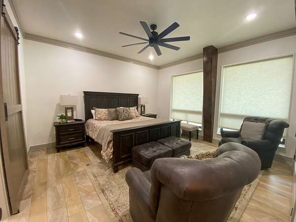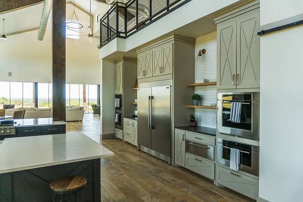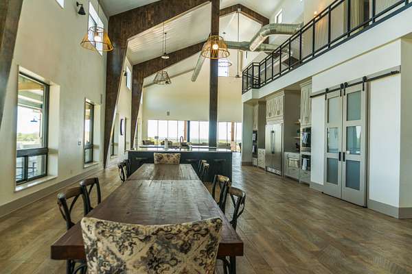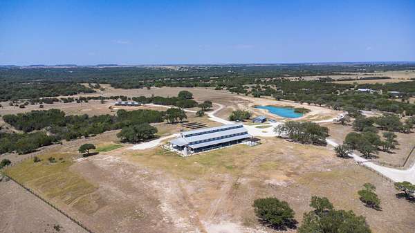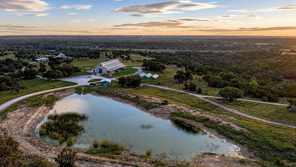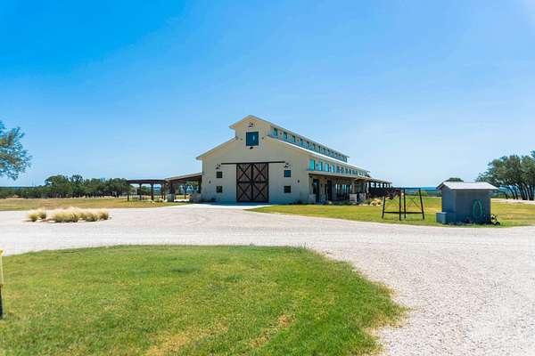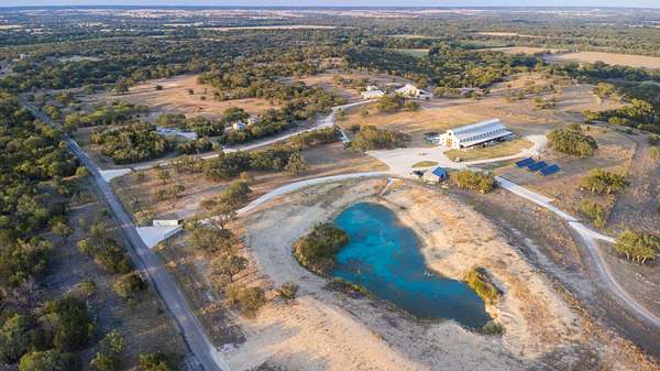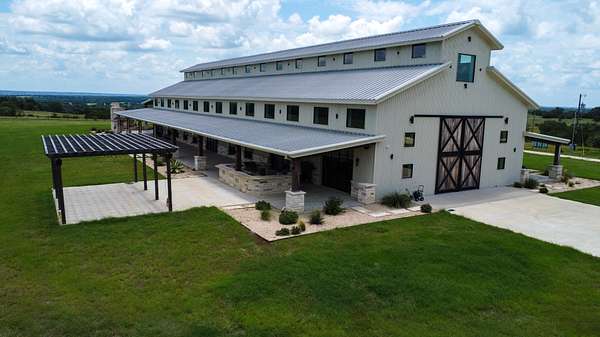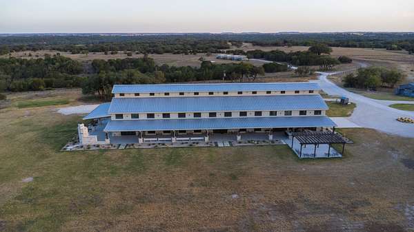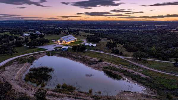This 55+- acre estate combines Texas Hill Country luxury, sustainability, and convenience--offering over 3,500 ft of paved road frontage and the flexibility to be a forever home, retreat, or venue property. At the heart of the property is a 10,000+- SF barndominium lodge with multiple living and entertaining spaces: - Open Living: A large open-concept living area flows into the chef's kitchen and an additional sitting space--perfect for daily life and gatherings. - Dramatic Great Room: A separate 2,500 SF entertaining space with soaring ceilings, full-height glass, retractable walls, and a full bar with seating. - Chef's Kitchen: Wolf appliances, double ovens, warming drawer, espresso/cappuccino station, dual dishwashers, wine chiller, walk-in pantry, and extensive built-ins. - Accommodations: Three master ensuites, plus a second-floor retreat with living area, kitchen, two baths, and an office ensuite with countryside views. - Outdoor Living: Indoor/outdoor bars, grilling station, grand fireplace, 8,200 SF of covered porches, and a pergola-shaded patio. Adding flexibility are four solar-powered guest cabins, each with full baths, kitchenettes, and porches. The main lodge is also backed by solar power for sustainable reliability. The land is fully fenced, includes two ponds, and provides space for grazing or recreation. Location: Just outside Gatesville--45 minutes from Waco, Temple, and Killeen, and within easy reach of Austin, Dallas/Fort Worth, and Houston. Opportunities: This turnkey property can serve as a forever home, luxury retreat, corporate getaway, wellness center or event venue. For those seeking more, there are 158+- adjoining acres available with Leon River frontage and additional living quarters.
