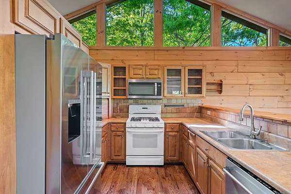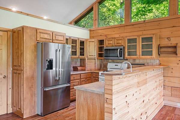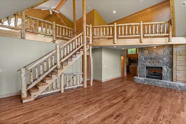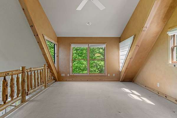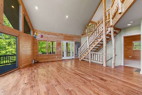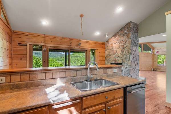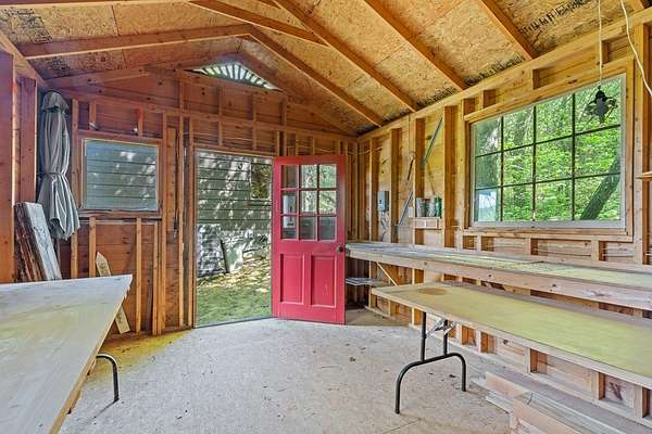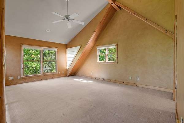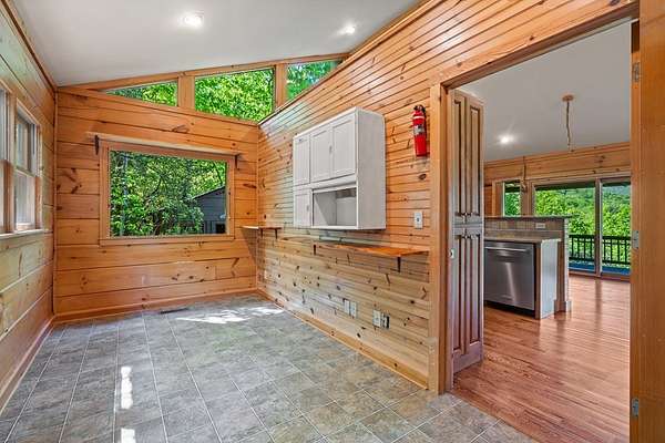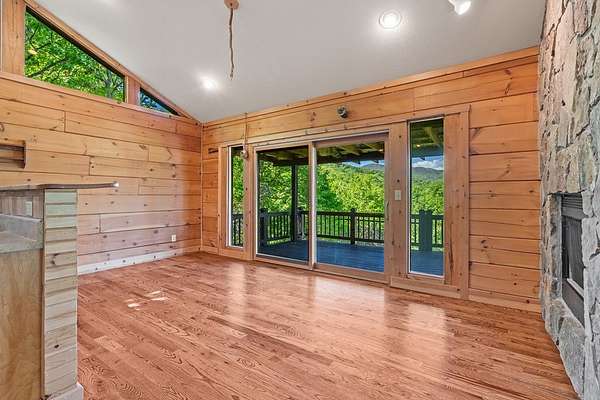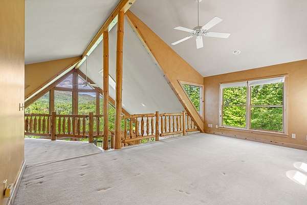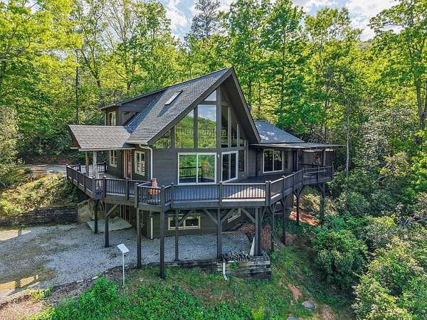 If you're seeking endless mountain views, look no further. This 3 bedroom, 3 full bathroom, 1 half bath home is located in the well established Northridge community with views overlooking Black Rock Mountain. Meander up a private paved road lined with mountain laurel and rhododendron to find this secluded retreat. Enter from a welcoming side porch to the main living area with 2-story vaulted ceilings and windows, hardwood floors and a 2-sided gas log fireplace. Upstairs, the spacious loft bedroom offers an ensuite bathroom and sitting area where the views are constant and ever changing. The primary bedroom is located on the main level complete with an ensuite bathroom with tiled floors, soaking tub, separate shower, and walk-in closet. The u-shaped kitchen with custom cabinetry offers a breakfast bar, gas range, dishwasher and stainless steel refrigerator. The dining room offers sliding glass doors that lead to a covered porch that's perfect for dining al fresco while enjoying beautiful sunsets. The laundry and office are just off of the kitchen with access to the upper parking area. Downstairs, a large additional living area complete with wet bar, spacious bedroom, full bathroom and ample storage can be used as a completely independent living space. A charming outbuilding behind the main home offers endless possibilities as a workshop, playhouse, or creative hideaway. Updates include a new roof in March, 2026 and exterior staining in April, 2026. This property is centrally located within a 10-minute drive to Downtown Clayton, and a 15-minute drive to Lake Burton, Lake Rabun and Tallulah Gorge State Park. This property offers accessibility, convenience and views for days.