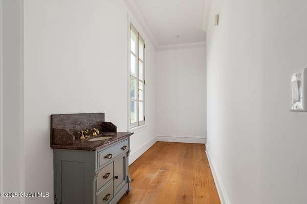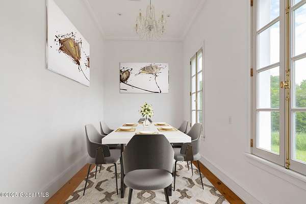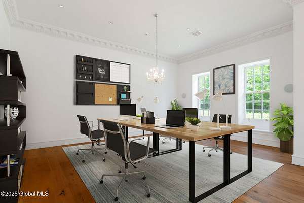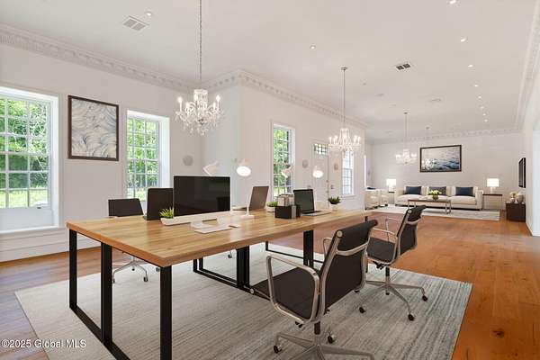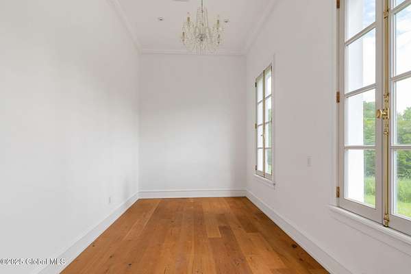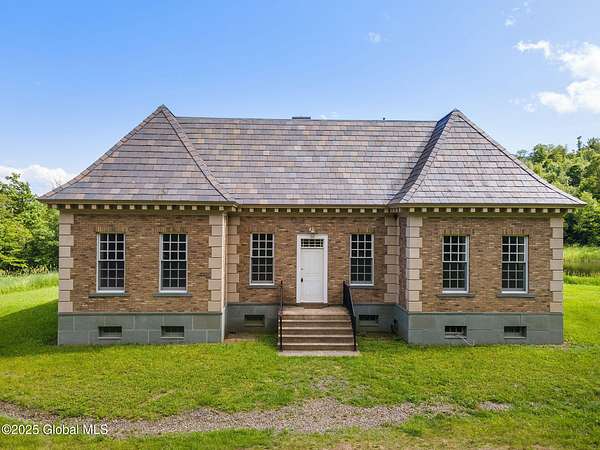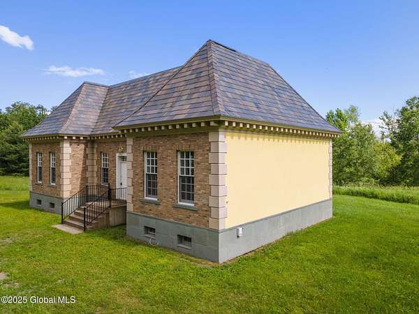 Nestled on 47 secluded acres with a large swimming pond, this one-of-a-kind property blends Old World architectural charm with modern sustainability. Originally built as an art gallery/studio, the structure features influences from English, French, and German design-including elements inspired by West Woodhay House, the Kensington Orangerie, and Sanssouci Palace. Inside, soaring ceilings, hardwood floors, and oversized windows create a grand, light-filled space. Eco-conscious touches include geothermal heating and embedded solar tiles. Surrounded by elm and lime trees, hedgerows, and David Austin roses, this extraordinary space offers endless potential for a private retreat, creative business, or dream residence.