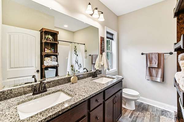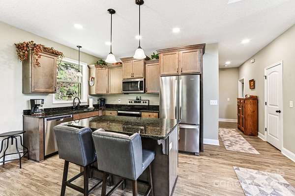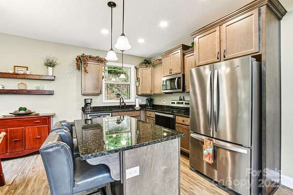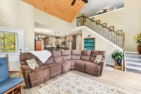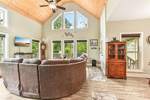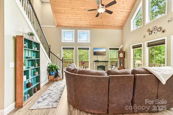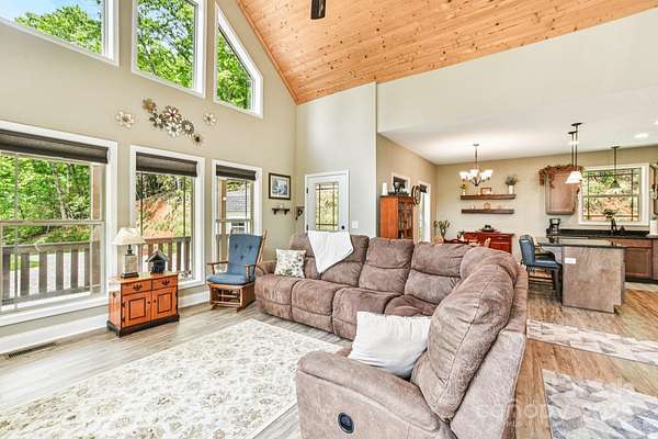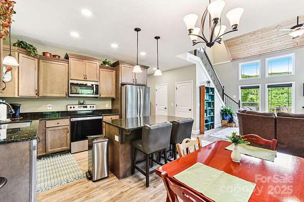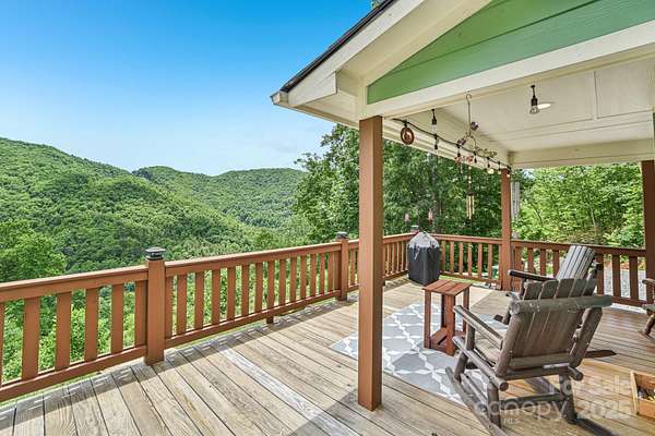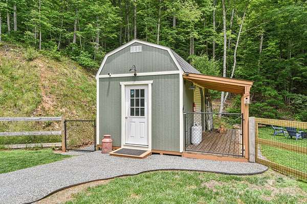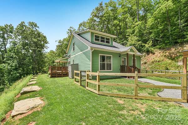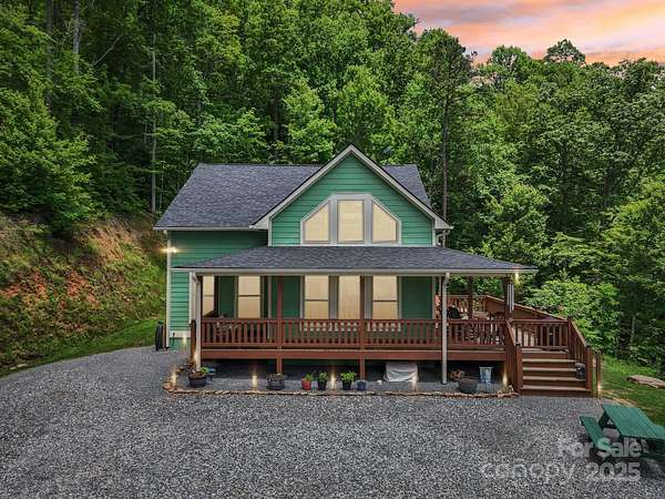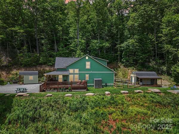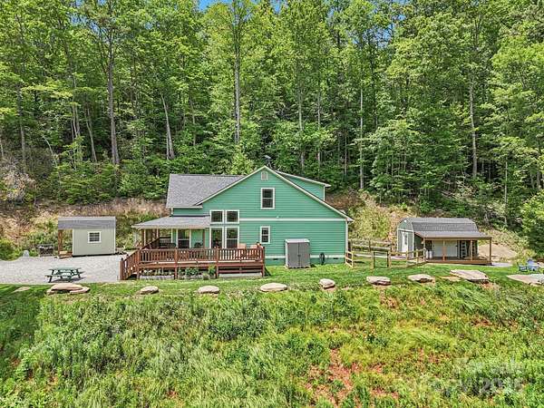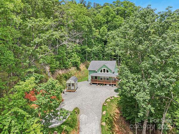 Immerse yourself in nature as you wind through the scenic roads of WNC on your way to this mountain top escape! This beautiful home offers the perfect balance of comfort, quality, and convenience. Built with care and attention to detail, the property still carries the remaining builder's structural warranty, giving you added peace of mind for years to come. Nestled within a mountain setting, this home provides privacy and natural beauty while still being close to everything you need. Located just 18 miles from downtown Franklin and 14 miles from downtown Bryson City, you'll enjoy access to local shops, dining, and entertainment along with more of what the Great Smoky Mountains has to offer. Inside, the home features an inviting open layout with plenty of natural light. The living area flows seamlessly into the kitchen and dining spaces, creating the ideal atmosphere for everyday living and entertaining. Quality finishes and thoughtful design touches can be found throughout. Main level bedrooms and bathrooms, including the primary suite offer added comfort, along with a flex space loft. The property's outdoor space is just as appealing, with room to enjoy fresh mountain air, host gatherings, or simply take in the surrounding views from the expansive deck. You'll find two sheds (front barn style 8x16 with loft; rear barn style 10x20 with loft) equipped with electricity, perfect for storage, a workshop, or creative space. An enclosed fenced area off the back of the home provides a secure space for pets or outdoor activities, blending convenience with the beauty of nature. Whether you're looking for a full-time residence, vacation escape, or an investment opportunity, 410 Moonlight Trail delivers the best of mountain living with modern convenience. Schedule your showing today and come see why this home is such a special find!