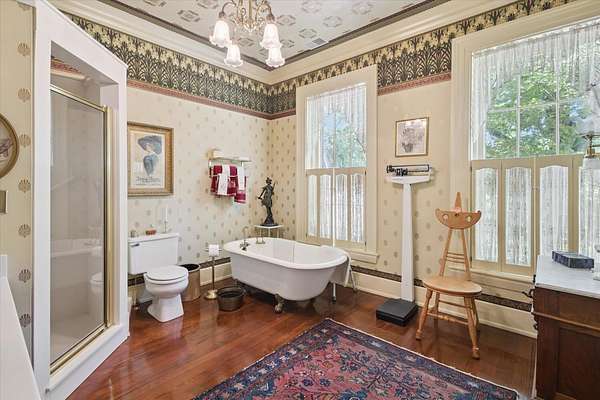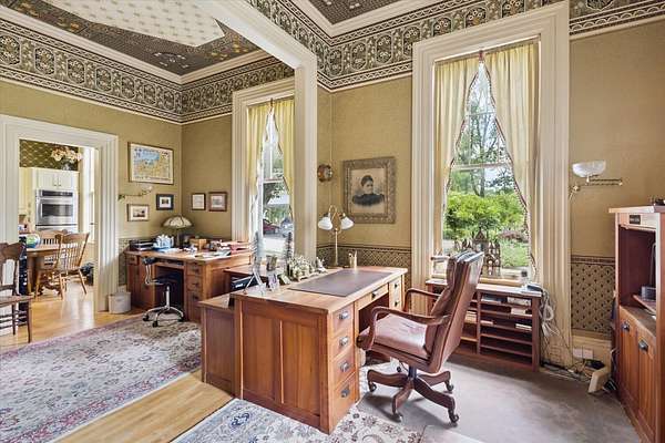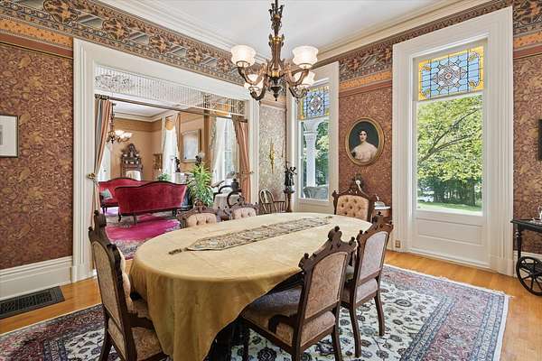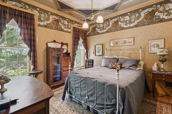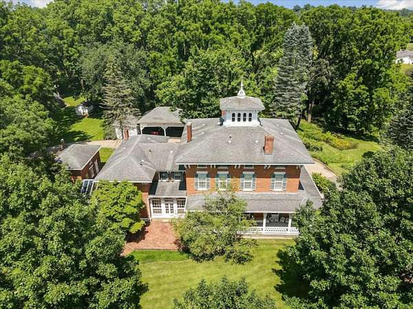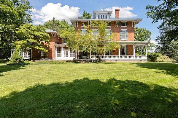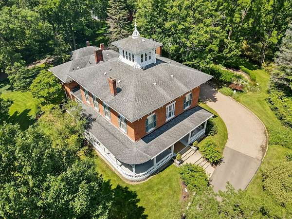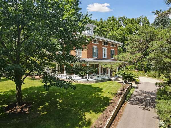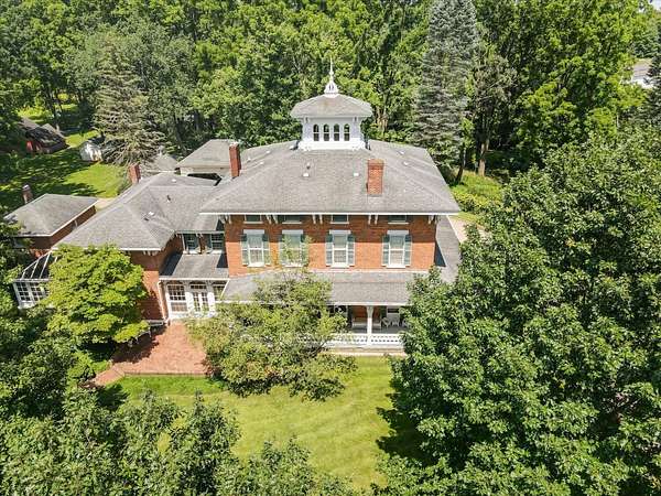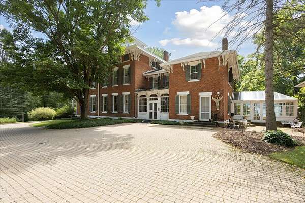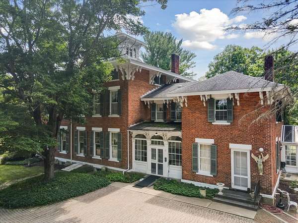Step into a piece of history with ''Oakhill,'' an exceptional 13-acre estate nestled in the quintessential town of Marshall, Michigan. This one-of-a-kind property offers a rare blend of Victorian grandeur, modern comfort, and unparalleled privacy, all within close proximity of downtown Marshall. Built in 1858 by Chauncey Brewer, this stately nearly 8,000 sq. ft. all-brick Italianate Victorian boasts timeless elegance and meticulous preservation. Property Highlights " Historic Architecture: A grand 1858 Italianate Victorian, featuring a huge wrap-around porch and intricate detailing. " Expansive Lot: more than 13 manicured acres with landmark trees, stunning landscaping, three patios, and a beautifully landscaped tennis court. " Spacious Living: 7 bedrooms, 5 full baths, and 3 half baths across three stories, plus a partially finished 2,937 sq. ft. basement. " Attached Apartment: A private 1-bedroom, 1-bath apartment with a separate ground-floor entrance, large eat-in kitchen, and living room. " Unique Outbuildings: Seven outbuildings, including a fully furnished Nancy Boyer Pub with an upper-level flexible space, a charming fairy book playhouse, and a grand covered 4-car carport. " Modern Amenities: Four gas furnaces, full air conditioning in the main house, a modernized kitchen, and updated systems for peace of mind. A Glimpse Inside Main Level: As you enter, a grand entryway with a beautiful long staircase and rich wood details sets the tone for the craftsmanship found throughout. Original hardwood floors, soaring ceilings, and abundant natural light highlight the home's classic elegance. Many rooms are meticulously adorned with historically accurate Bradbury & Bradbury wallpapers. The main floor features a modernized kitchen with granite countertops and stainless steel appliances, including a double wall oven and 5-burner gas stove. Adjacent to the kitchen is a large office space. You'll also find a gorgeous living room with built-in bookcases, a formal dining room, a front parlor/living room (which includes an extra-large oriental rug), one bedroom, one full bath with a large composite shower, and one half bath. A small four-season porch offers additional living space, and an attached Conservatory boasts a built-in hot tub with a ceramic tile deck, offering gorgeous views of the property. Second Level: The second floor is a private retreat, featuring a second primary bedroom with an en-suite full bath and dressing room. Additionally, there's a bedroom with an en-suite half bath, two more bedrooms, a full bathroom, and a convenient laundry room. The hallway full bath features a clawfoot tub, walk-in shower, and large linen closet. Third Level: The third floor offers two large bunk/bedrooms, both with en-suite full bathrooms. A cozy sitting area between them provides a stairway to the rooftop belvedere, and a large finished storage area completes this level. Basement: The 2,937 sq. ft. basement is half finished, featuring a recreational room and a beautiful wood-paneled office with built-in bookcases. A half bath is also located in the finished portion. The unfinished area includes a shop with approximately 50 lineal feet of custom-built workbench and pegboard storage. Outdoor Oasis "Oakhill's" grounds are a masterpiece, spanning more than 13 meticulously landscaped acres. Enjoy three patios for outdoor dining and entertaining, an expansive lawn, walking paths, seasonal flower beds, and a variety of mature trees. The beautifully landscaped tennis court is ready for your next match. Beyond the main house, discover the charm of the fully furnished Nancy Boyer Pub, a unique space for entertaining with an upstairs perfect for an additional home office, creative studio, or sleeping area (heated by in-wall electric heaters). The whimsical fairy book playhouse, built in the early 1990s, is every child's dream. Additionally, several original small barn