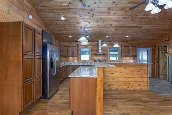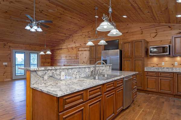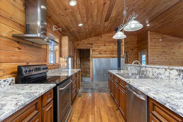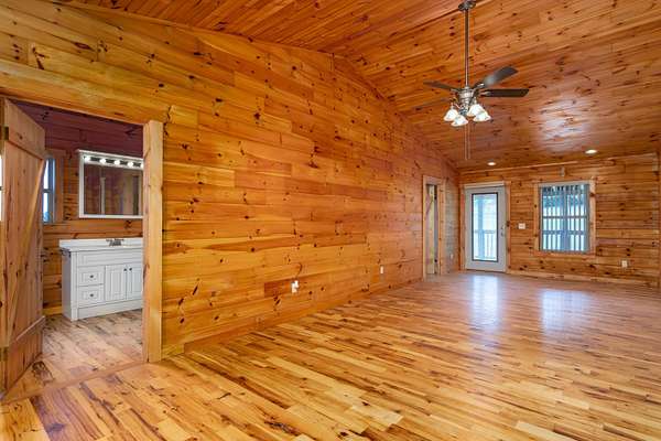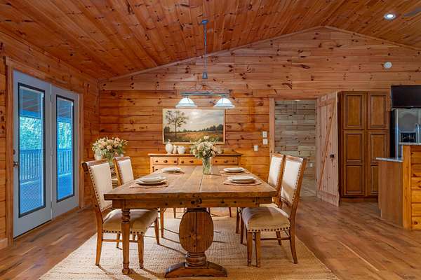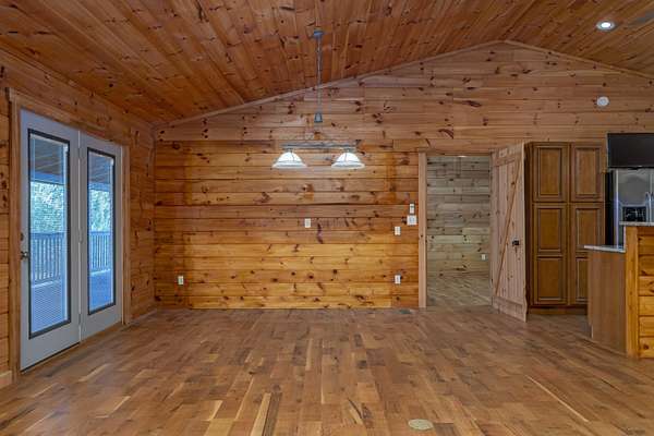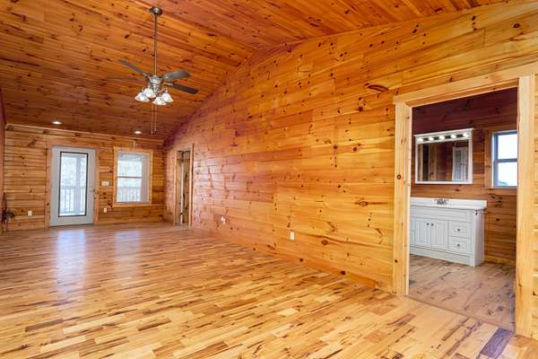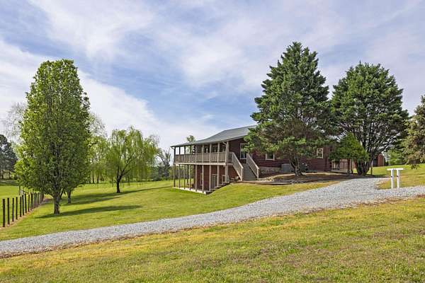 Discover the perfect blend of rustic charm and modern luxury with this stunning log home nestled on a sprawling 9.7 acres in Dayton, Tennessee. Offering breathtaking views, this expansive 3,840 sq ft residence is designed for both comfortable living and entertaining, making it a true sanctuary for families and nature lovers alike. The kitchen, the heart of the home boasts ample cabinetry, gorgeous granite countertops, and stainless steel appliances, perfect for culinary enthusiasts. The seamless flow between the kitchen, dining, and living areas creates an inviting space for gatherings and family time. The main level includes a primary suite with cathedral ceilings, leading to his-and-her bathrooms connected by a spacious walk-in closet for ultimate convenience. A well-appointed guest room and full guest bath on the main level offer comfort and privacy for visitors. The fully renovated lower level features a separate entrance and includes a full kitchen, a large family den for relaxation and entertainment, 3 additional bedrooms (perfect for guests or a growing family) and laundry closet, making this area ideal for a mother-in-law suite or separate living quarters. This large log home features an oversized wrap-around porch, ideal for enjoying morning coffee or evening sunsets. The expansive property includes a large outbuilding in the backyard, offering endless possibilities for storage, a workshop, or even a hobby space. Whether you're looking for a peaceful retreat, a family home, or a property with potential for multi-generational living, 410 Pioneer Trail has it all! Schedule your private showing today and experience the beauty of Tennessee living! Block building on 2 acres to the right of the home is not included in the price
