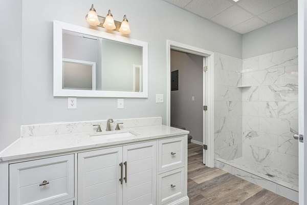 - Bathroom Mirror(s), Built-In Features, Ceiling Fan(s), Double Closets, Eat-In Kitchen, Granite Counters, Kitchen Island, Open Floorplan, Primary Downstairs, Separate Living Quarters, Walk-In Closet(s)