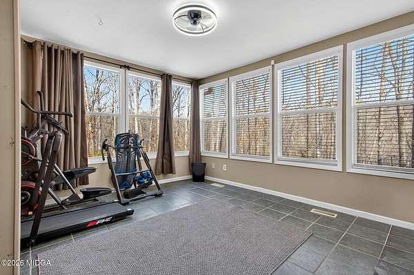 All-brick home nestled on a private 3.4-acre lot in desirable South Monroe County! From the moment you step into the two-story foyer, you'll appreciate the spacious and well-designed layout. A front office offers the perfect spot for working from home, hobbies, or flex space to fit your needs. The kitchen is a standout with granite countertops, a gas range plus an additional island for prep and gathering, so there is plenty of room to cook and entertain. The living and dining areas flow together seamlessly, highlighted by a brick fireplace with gas logs. Just beyond, a bright sunroom overlooks the peaceful, wooded backyard. Upstairs features four generously sized bedrooms. The primary suite offers a tray ceiling and a beautifully appointed bath with granite countertops, a garden tub, separate shower, and a spacious walk-in closet. The finished basement provides incredible flexibility with a large living area, laminate flooring, full bath, and kitchenette. With its own side entry including a sidewalk as well as interior access, this space is perfect for guests, extended stays, hobbies, or additional living needs. For the outside there is a well to use for watering, the home uses county water. With a fantastic floor plan, ample space throughout, and a beautifully maintained interior, this home is clean, move-in ready and ready to impress!