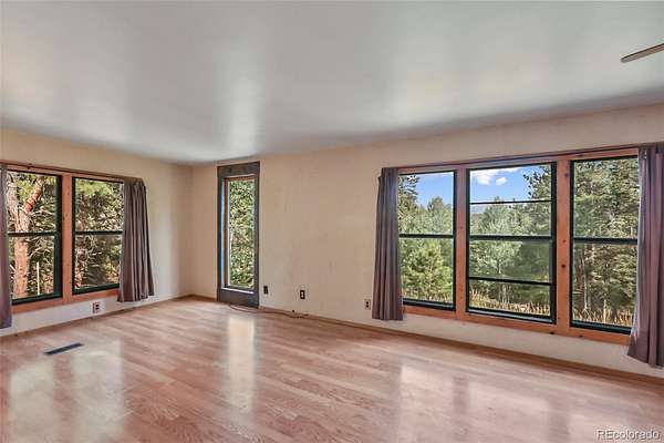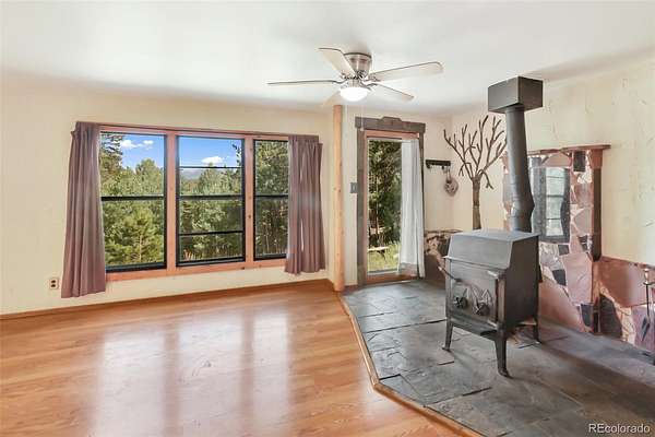 Tucked away on 4.04 private acres with stunning mountain views, this charming home offers peaceful living with room to roam. Inside, you’ll find an open-concept layout with spacious living areas, custom tile accents, a cozy fireplace, and a kitchen featuring granite countertops and abundant workspace. The bathroom offers a beautifully tiled free-standing shower and soaking tub. An oversized detached garage provides plenty of space for vehicles, storage, or hobbies, while additional leveled areas on the property offer room for recreation, parking, or future possibilities. Surrounded by nature and endless Colorado beauty, this property is the perfect blend of comfort, privacy, and mountain living.