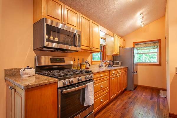 Tucked away on 5.72 private acres in the mountains of Murphy, this beautifully maintained, move-in ready home offers a peaceful retreat with room to breathe. The property features a thoughtful mix of open space and mature trees, along with established raised garden beds that make the land as usable as it is inviting. Enjoy outdoor living from the front deck overlooking the gardens, or unwind on the covered, screened-in back porch that is perfect for taking in the sereneness of your surroundings. With abundant privacy, the sights and sounds of birds and local wildlife add to the natural charm and sense of escape. The property also includes a workshop with electricity, a chicken coop with a fenced run, and two additional storage sheds—ideal for homesteading, hobbies, or simply having extra space to spread out. With underground utilities preserving the beauty of the landscape, this property offers the privacy and charm of a true mountain retreat.