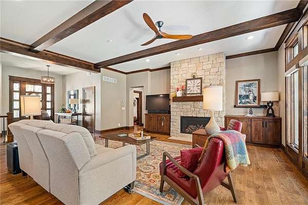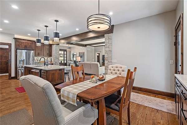 Nestled on 10 peaceful acres this Bonner Springs property offers the perfect blend of modern comfort and rural privacy. Built in 2019, the home features many custom features, thoughtful design, and wide-open views of the surrounding land. Whether you're looking for room to roam or a quiet retreat surrounded by nature, this property delivers a rare opportunity to enjoy acreage living just minutes from all of the Western Wyandotte County conveniences. Some of the many features are Quartz counters, butlers pantry, a laundry room, and screened porch. Included with this spacious home is a oversized shop and garage for all of the toys. You will be impressed with what this home has to offer so do not delay maiking a time to step back to nature.