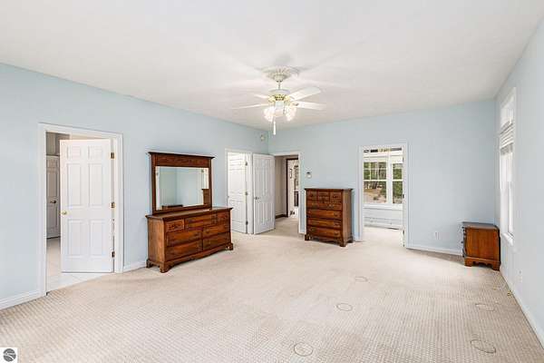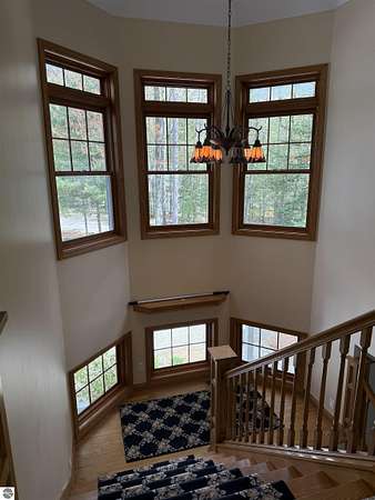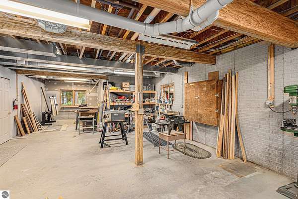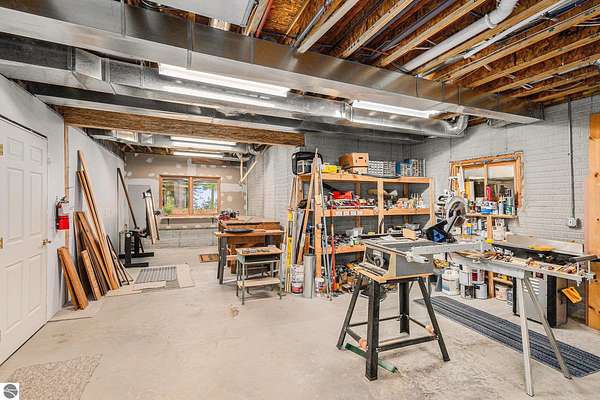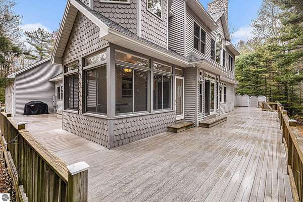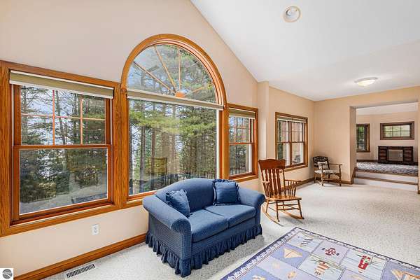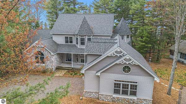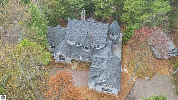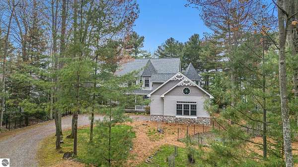 Discover your own piece of paradise with this stunning East Bay waterfront property, where every day feels like a vacation. Enjoy direct access to one of the world's most beautiful freshwater lakes and immerse yourself in the ultimate lakefront lifestyle. Step outside to your 200' of private sandy beach on East Bay and savor the soothing sounds of waves and breathtaking sunsets. Whether you seek relaxation or adventure, this home offers it all: kayak along the shoreline in the morning, spend afternoons boating or paddle boarding from your dock, and gather around a lakeside fire pit in the evening. Experience true Northern living in this stunning Custom Woodcraft home nestled on 3 acres located just minutes from Elk Rapids and Charlevoix. Designed for maximum enjoyment, this spacious retreat features expansive windows and spacious decking. Home features over 4500 sp. ft. of living space, 5 bedrooms and 5.5 bathrooms, thoughtfully designed for comfort and entertaining. The open floor plan showcases quality craftsmanship with natural wood finishes, expansive windows framing water views, and generous living spaces ideal for gatherings or peaceful relaxation. In addition to the main residence, the property includes a charming original Bellaire log cabin, perfect for guests or a cozy getaway, and a large pole barn providing ample space for storage, hobbies, or equipment. Experience the magic of Lake Michigan-embrace serenity, adventure, and the timeless appeal of living by the water's edge. Your ultimate waterfront lifestyle awaits. Be sure to open and view the virtual tours. See Special Features Sheet, floor plans and survey in documents.