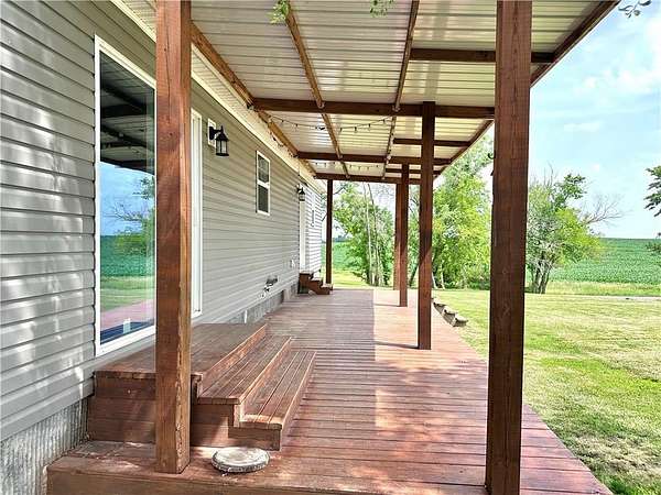 Experience the perfect blend of comfort and country living with this newer 1,728 sq ft ranch-style home, built in 2017 and nestled on 8 scenic acres. This 5-bedroom, 2-bath home features a spacious kitchen complete with stainless steel appliances, granite countertops, and a walk-in pantry. Relax on the covered front or back porch and soak in the peaceful views. Outdoors, you'll find a massive 50' x 80' machine shed with 18' sidewalls, two 16' x 16' doors, a concrete floor, and electricity--ideal for equipment, hobbies, or storage. The property also includes perimeter fencing and cross-fencing, a frost-proof waterer, and a large stocked pond, making it livestock-ready and recreationally appealing. Whether you're looking for a hobby farm, homestead, or simply room to breathe--this property checks all the boxes!