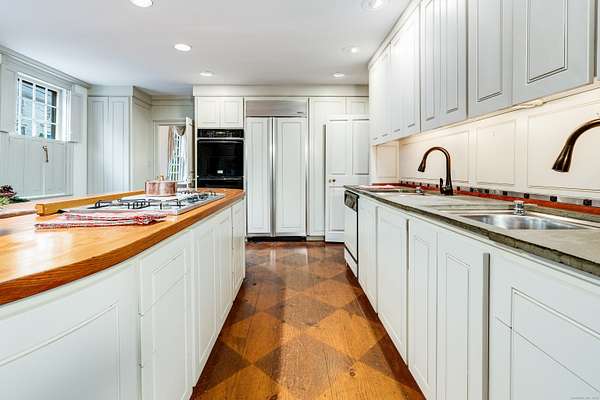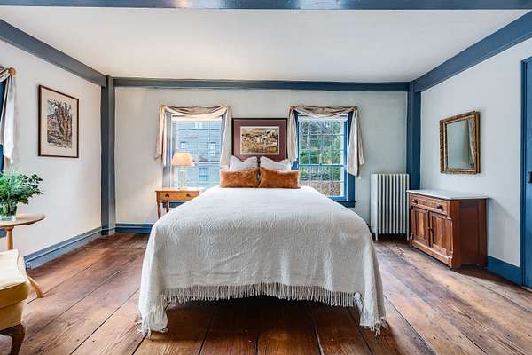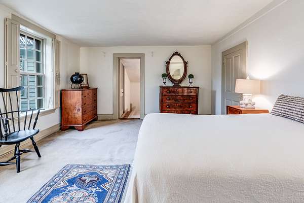 Discover the perfect blend of historic charm and modern comfort in the distinguished Christopher Huntington Residence, a c.1760 "Norwich Plan" home with historical provenance dating to 1720. Set on two private acres overlooking Lowthorpe Meadow in the coveted Norwichtown Historical District, this beautifully proportioned antique residence offers generous living spaces enhanced by original wide-plank flooring, exposed wood beams, and fine period paneling throughout. The warm and inviting parlor and dining room provide elegant settings for both formal entertaining and intimate gatherings. The custom kitchen, designed by architect Jonathan Isleib, is a true chef's delight featuring a dramatic oval center island, Sub-Zero refrigerator, double ovens, gas cooktop, and double sinks. Open to the family room, the heart of the home flows seamlessly to a spacious outdoor deck - ideal for alfresco dining or quiet relaxation. The thoughtfully designed primary suite offers a luxurious full bath and dedicated dressing room, while the second bedroom enjoys the convenience of an en-suite bath. Additional rooms provide versatility to serve as bedrooms, a home office, or creative spaces to suit your lifestyle. Ideally located with close proximity to Backus Hospital, area casinos, and local amenities, this historic treasure offers both tranquil countryside living and convenient access to modern conveniences.