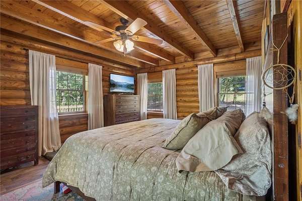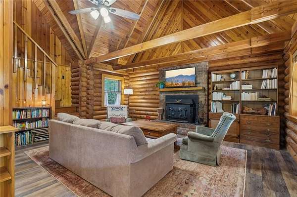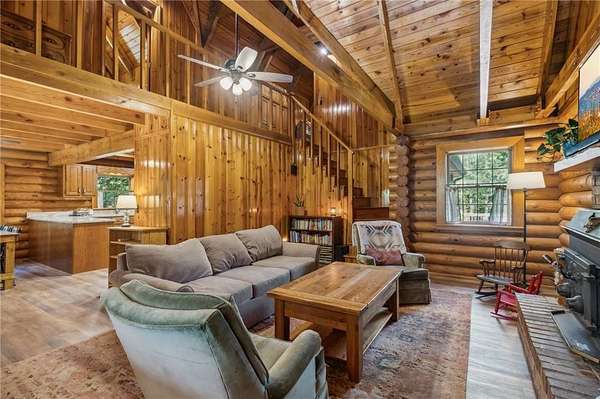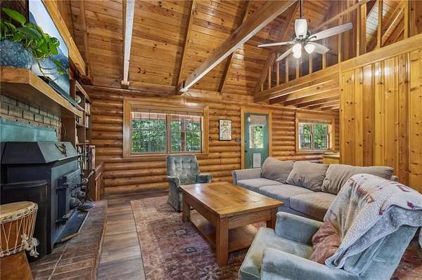 Charming Log Cabin on 2.65 acres - Rustic Comfort Meets Modern Convenience. Discover a warm, inviting log cabin tucked into 2.65 acres of Northshore Mountain beauty. An open floor plan welcomes you with vaulted wood ceilings and rich log walls that create authentic rustic character with a touch of elegance. The thoughtful layout includes a main - level primary suite and two additional bedrooms - plenty of space for family and gas. Outdoor living is a highlight: wrap-around porch provides multiple quiet spots for more coffee or sunsets, and a dedicated fire pit area is perfect for gatherings. The large grassy lot offers room for kids to play, Pets to roam, and ample space for entertaining. Location blends seclusion with convenience - close to restaurants, North Georgia, wineries, and shopping, yet a peaceful retreat away from city traffic. Outdoor enthusiasts will love nearby hiking on the Appalachian Trail and challenging bike trails. With no HOA, this property is both a lifestyle escape and a smart investment. Schedule a showing and imagine life in this North George log cabin.