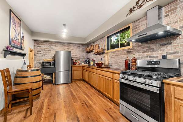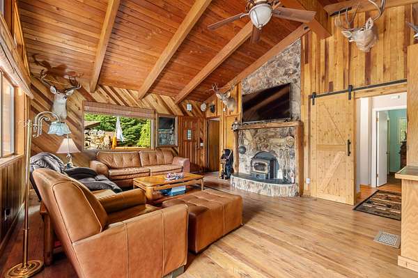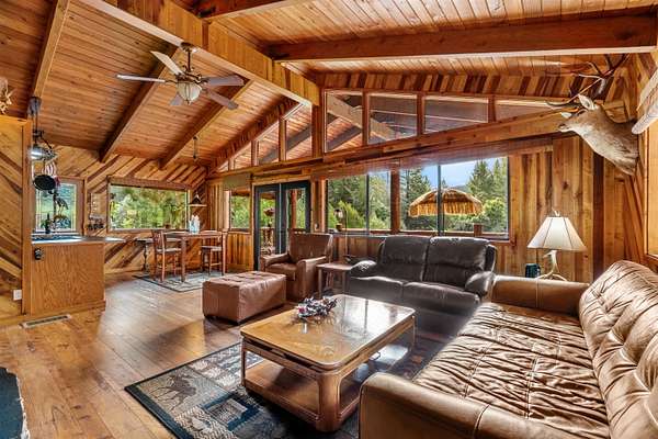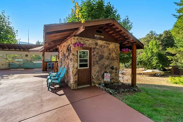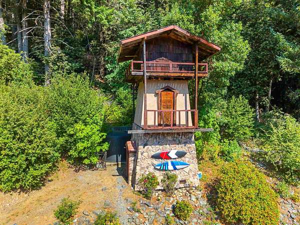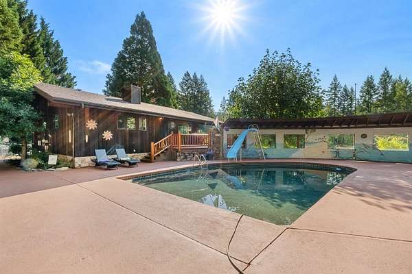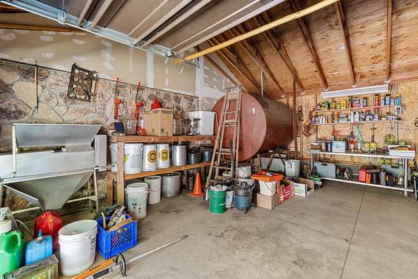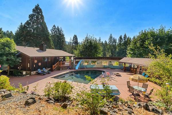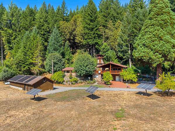 Off-Grid Vineyard Oasis with Pool, Solar Power, and Airbnb Potential.. Welcome to your dream off-grid escape--where luxury, sustainability, and income opportunity all come together. Set on over three and half beautiful acres, this one-of-a-kind property offers privacy, character, and endless potential. Whether you're looking for a peaceful retreat, a profitable Airbnb, or your own boutique vineyard, this estate delivers. The home is full of rustic charm and warmth, featuring myrtlewood interior walls, beautiful engineered hardwood flooring, and expansive windows that flood the space with natural light. With three bedrooms and four full bathrooms, the home is ideally designed to function as either a spacious single-family residence or a dual apartment-style setup. Each level has its own kitchen access, bedroom, and private entrance--making it perfect for hosting guests, extended family, or short-term rentals. The pool area is an entertainer's paradise, featuring a deep 9-foot Pebble Tec pool with a water slide and a custom mural. Nearby, you'll find a wet bar and plenty of space to relax or entertain. The historic water tower has been thoughtfully converted into a charming bunkhouse, adding to the unique character of the property. The vineyard is a true gem, with four grape varieties including Cabernet, Merlot, and Muscat. The vines can produce up to 400 bottles of wine per year, and the sale includes all the equipment you need--grape press, carboys, vats, and more. There's even a dedicated space for bottling, making this property ideal for aspiring winemakers or wine enthusiasts. Power won't be a concern here. The home is fully off-grid, powered by a robust solar system including 36 panels with two large inverters, a battery backup room, and a diesel generator. There are two wells on the property, including the highest-producing well in the area. Heating is handled by a wood stove upstairs and a monitor heater downstairs, while two on-demand hot water heaters ensure comfort year-round. The detached garage is a standout feature, offering over 2,000 square feet of space, room for three cars, and additional storage or workspace. The large deck overlooking the property has been redone in the past 10 years and features beautiful log railing work, providing a perfect spot to enjoy peaceful views and fresh air. With so much to offer--location, privacy, solar power, income potential, and unmatched charm--this extraordinary off-grid property is ready to welcome its next chapter. Airbnb, hobby vineyard, or private retreat? The possibilities are endless.