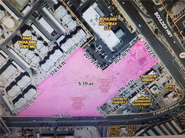 Est $43,514/moFive contiguous parcels for sale (5.46 acres) with Boulder Hwy frontage and Desert Inn frontage. Multiple zoning uses. Lot numbers include 161-07-801-009,010,012,14 & 015. No HOA. Overhead power is available. Water and sewer are in the street. Owner may carry short term with a short feasibility period.