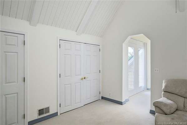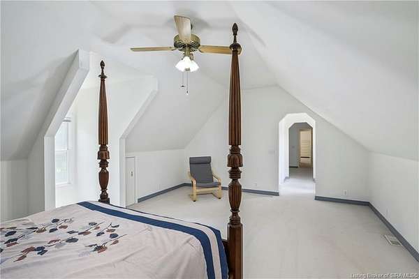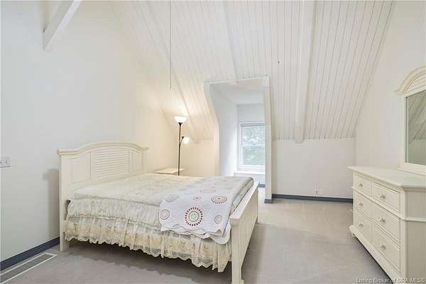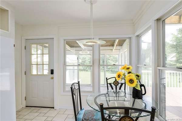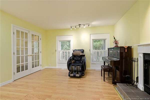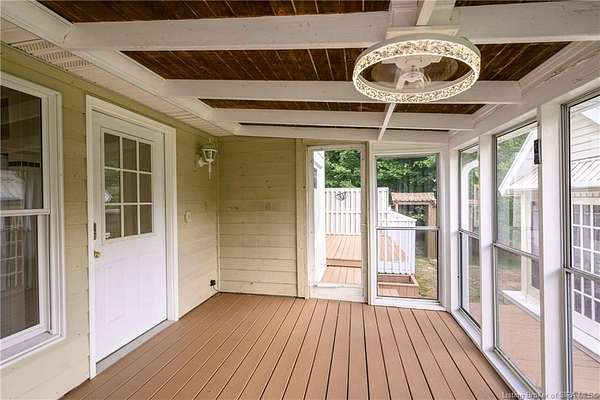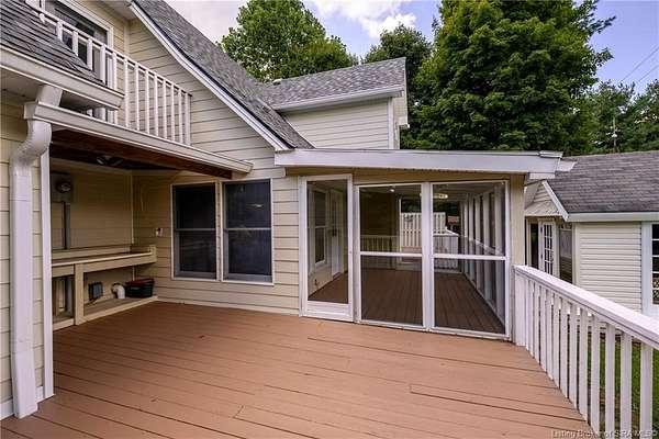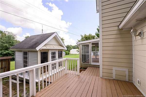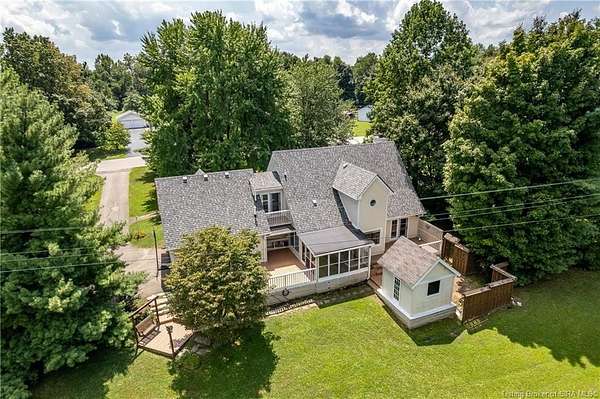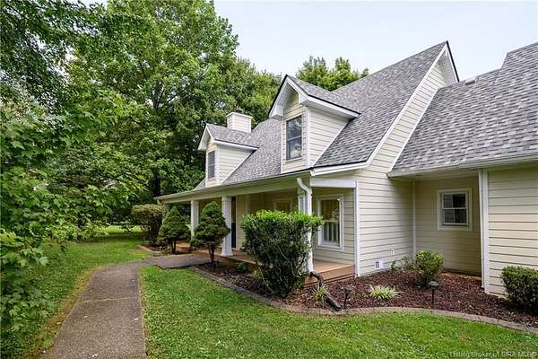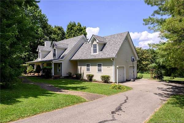 Floyds Knobs! Home with almost 8 private acres for kids to explore, play sports, enjoy the outdoors, raise chickens, garden and more! Welcome to this private & inviting Cape Cod-style home offering 3 Bedrooms including 2 Main Bedroom Suites and 3 1/2 bathrooms. The bonus room on the second floor could possibly be a 4th bedroom. Spacious foyer features a soaring ceiling w/shiplap & glass pane doors! Living Room features a wood burning fireplace! The Dining room adjoins the Kitchen which opens onto a rear enclosed porch overlooking the beautiful rear acreage! Barn with blue tin roof currently being used for storage has lots of possibilities. A small, detached shed behind the house offers lots of options (previous owner had hot tub there.) Multiple decks. 2 car attached garage. Enjoy the best of country living! Newer Roof & exterior Siding. 1 year 2-10 Home Warranty provided. Nestled in a private setting this property offers room to grow, play & enjoy the outdoors - while still being close to some of the best schools! Sq ft & rm sz approx
