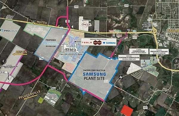 No longer in Taylor ETJ...ready for development. This 34.652 acres lot & 1.292 acres lot (Sold Together) are right down the street from the new Samsung facility being built! Ideal county property just outside of city limits with NO ZONING land! Just 0.7 mile from the Samsung location under construction, and just 30 miles from Austin. Don't miss out on your chance to get in early for this growing area!
