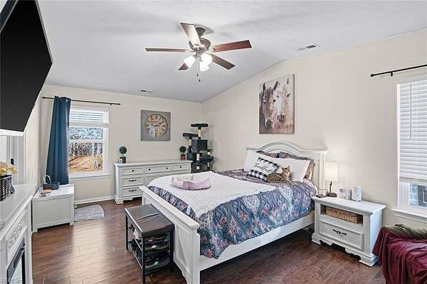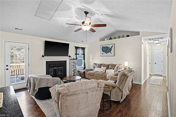 - Ceiling Fan, Dual Entry Bath (br & Hall), Fireplace Gas-Natural, Gar Door Opener, Primary Sink-Double, Scuttle Access, Security Sys, Skylights, Walk-In Closet