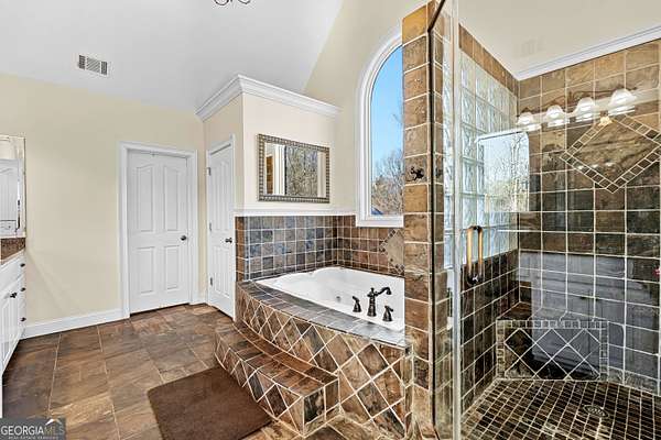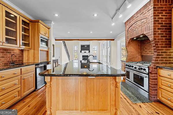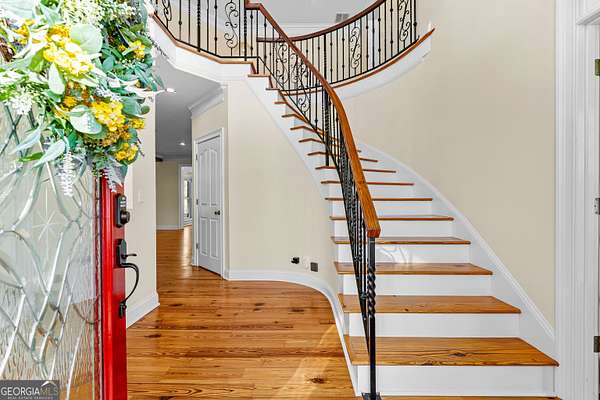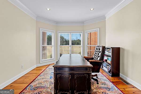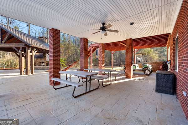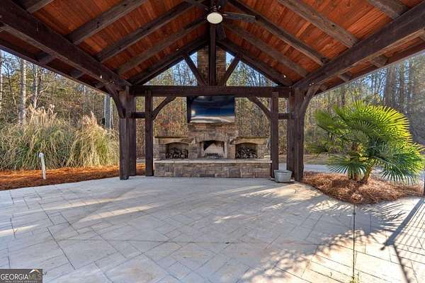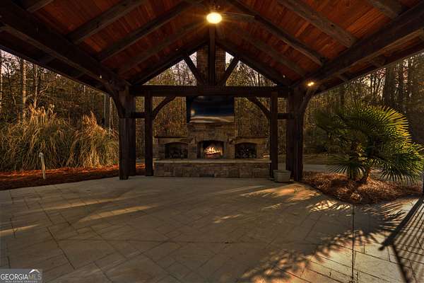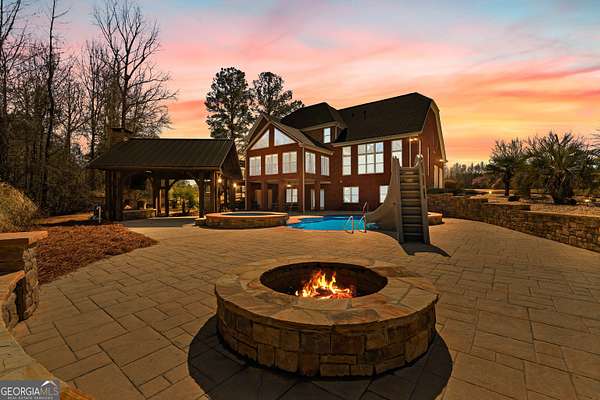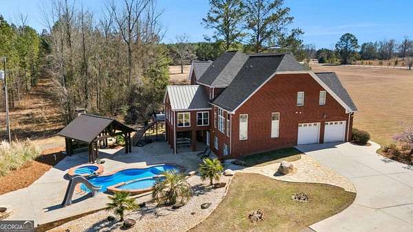 Welcome to this exceptional four-sided brick estate nestled on 15 breathtaking acres in the desirable Brooks area of Spalding County, with potential eligibility for the Brooks school district. Featuring a private pond ideal for fishing or duck hunting, serene marsh views, and resort-style outdoor living, this property offers privacy, versatility, and refined comfort. A grand two-story foyer with an ornate curved staircase and dramatic chandelier sets the tone. Two flexible rooms flank the entry, perfect for home offices, a gym, playroom, or creative space. The formal dining room showcases judges paneling, elegant trim, and custom built-ins for displaying treasured pieces. The chef's kitchen is designed for both beauty and function, offering custom cabinetry, granite countertops, walk-in pantry, prep sink, oversized island, and premium appliances including a 6-burner gas range with grill top, double ovens, wine refrigerator, and ice maker. The brick-arched stove surround creates a striking focal point. Just off the kitchen, the vaulted keeping room/sunroom overlooks the private backyard oasis, while the two-story family room features a gas fireplace and rear staircase access. Upstairs includes four spacious bedrooms and three full baths. The owner's suite is a private retreat with room for a sitting area and a spa-inspired bath featuring slate floors, tiled shower, soaking tub, and large walk-in closet. The finished terrace level is ideal for multigenerational living, complete with a full kitchen, living area, bedroom, bath, separate laundry, and additional garage access. Outdoor living truly sets this estate apart. The heated saltwater pool includes a tanning ledge, slide, waterfall features, and attached hot tub. An architect-designed covered pavilion with masonry fireplace and grilling area creates the perfect year-round gathering space. A 40x60 workshop with utilities and upstairs office/storage loft adds exceptional flexibility for business or hobbies. With heart pine hardwood floors, three garage bays, and unmatched amenities, this one-of-a-kind property offers the ultimate opportunity to live, entertain, and unwind in your own private retreat.