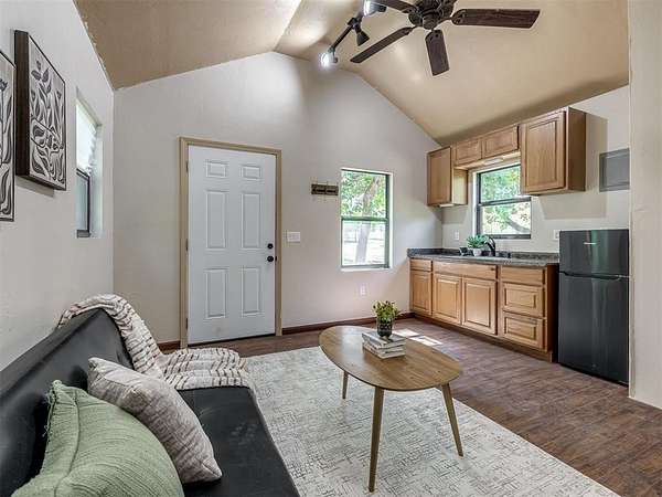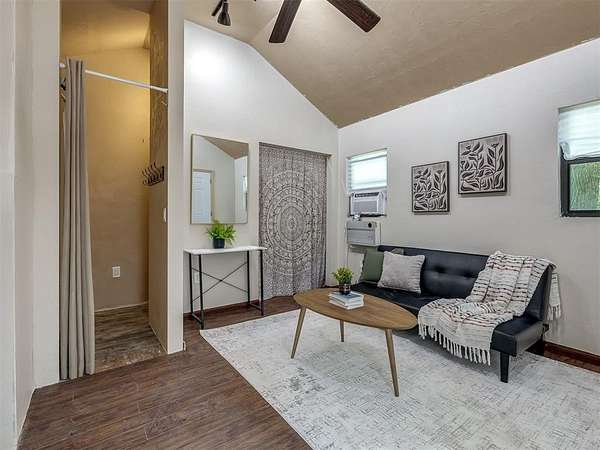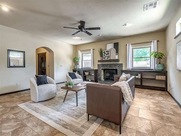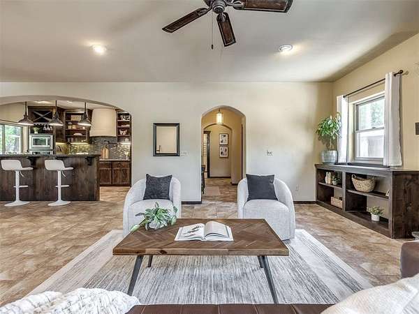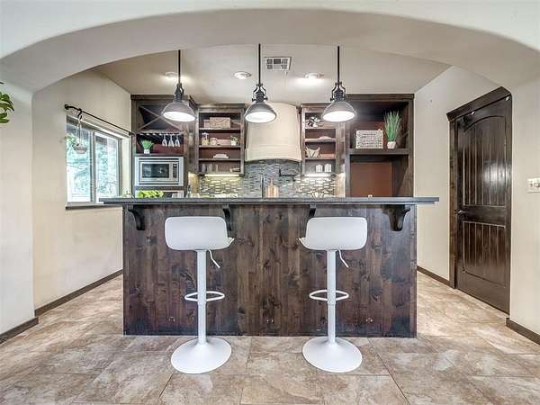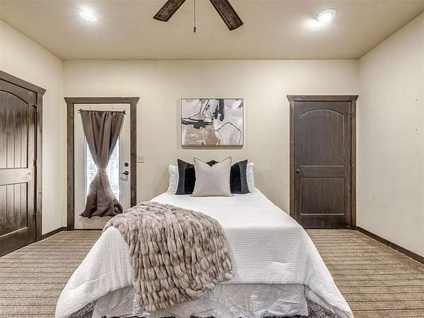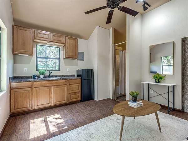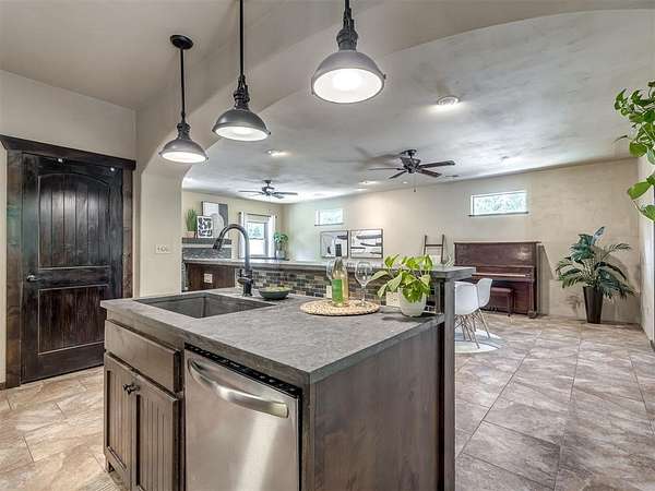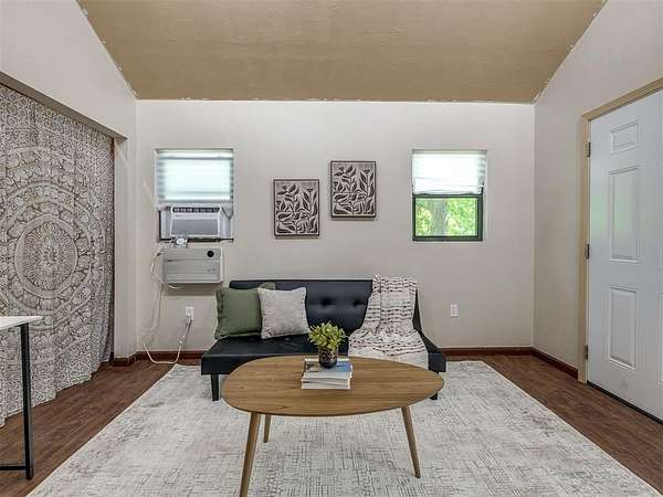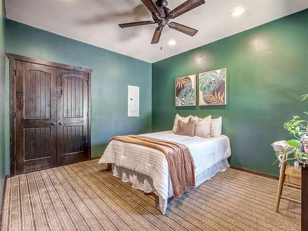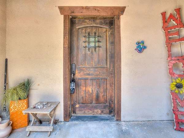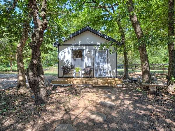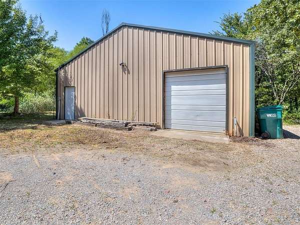 Welcome to your private oasis! This stunning Spanish-style stucco home sits on 2.39 acres at the end of a quiet, dead-end road, offering both privacy and convenience-just 15 minutes to Tinker Air Force Base and an easy drive to downtown OKC! Built in 2014, from the minute you enter the custom and spacious courtyard, you know this home is special. The main home features 2 bedrooms, 1 bathroom, and has an inviting open floor plan with abundant natural light. The kitchen is centered around a large island, ample storage, and flows beautifully into the main living space. The primary suite includes easy access to your stackable washer and dryer closet, spa-like bathroom with a soaker tub, and a gorgeous tiled walk in shower! This property is also equipped with solar panels - save on your utilities! It also has a BRAND NEW roof replacement, it's less than a year old! Off the back of the house, you'll love the massive back deck perfect for entertaining, a gorgeous backyard with mature trees on a thoughtfully cleared, yet private, acreage. Adding to its uniqueness, the property includes a charming guest house with its own kitchenette, bathroom, and heat/air system - nestled amongst the trees for ultimate serenity. Hobbyists and creatives will appreciate the 30x36 shop with an enclosed room and the large greenhouse ready for year-round gardening. Don't miss the charming, established pond completed with lily pads & ready for more fish! This one-of-a-kind property blends character, comfort, and functionality-truly unlike anything else near Oklahoma City. Ask your Realtor about the FHA assumable loan on the property that only has a 3.5 interest rate!