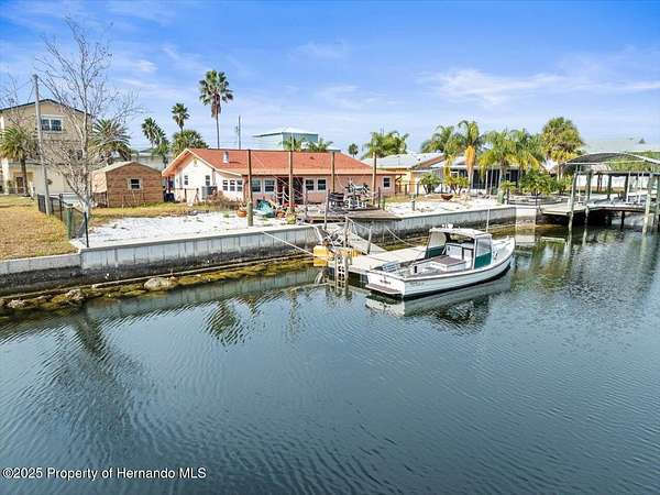 Est $3,200/moDouble Lot with Direct Access to the Gulf of Mexico. Withlacoochee River Electric and Hernando County Water/Sewer on on site. Home was affected by Hurricane Helene. This double lot has a 100 ft concrete seawall and boat dock for your fishing/boating pleasures. This property was affected by the Hurricanes and is being sold for the value of the improved land giving you a blank slate that offers easy access to boating and fishing in the Gulf. This is a double lot measuring 100x100 sq ft. Plenty of room for your dream home and a pool.