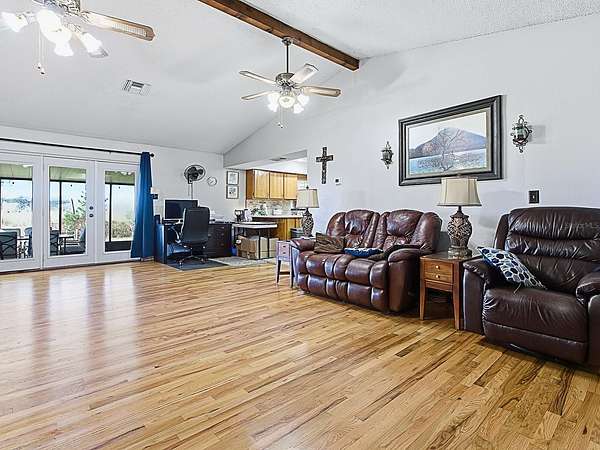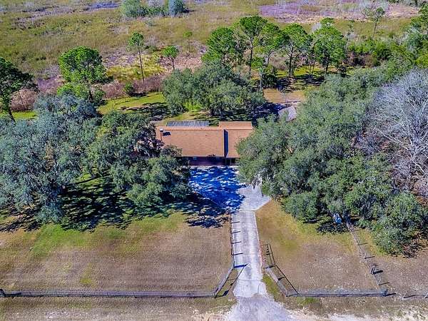 Price Improvement! Mini-Ranch / Mini-Farm - 5 Bedroom / 3 Bath Country Home on Nearly 10 Acres including IN-LAW SUITE/APARTMENT! Discover the ideal blend of peaceful country living and modern convenience in this warm, inviting block/brick residence situated on approximately 10 acres total with several income producing possibilities! The property offers the privacy of about 7 acres of conservation area directly behind the home, plus approximately 3 fenced acres surrounding the house with shady areas, a side pasture/garden space, and water spigots ready for livestock, gardening, or farm animals. This spacious home features 4 bedrooms and 2 full bathrooms on one side and a separate handicapped-accessible in-law suite/apartment with its own private entrance--ideal for extended family, guests, multi-generational living, or apartment. The beautifully updated country kitchen showcases quartz countertops, a classic farmhouse sink, and new appliances. Genuine real wood floors flow throughout the home, complemented by a cozy wood-burning fireplace in the living area. Additional comforts include an inside utility/laundry room, an enclosed air-conditioned Florida room, and screened front and back porches for year-round enjoyment. The property also offers two outbuildings plus abundant storage space, with plenty of room to bring your horses, farm animals, toys, trailers, and equipment. Recent upgrades include a new roof installed in 2019, a brand-new Trane HVAC system, and generator with Generac 10 circuit switch. Conveniently located just minutes from The Villages with world-class shopping, dining, entertainment, and medical facilities, and approximately 1 hour to Orlando attractions, Orlando International Airport or the World Equestrian Center in Ocala. Don't miss this exceptional opportunity--schedule your private showing today!