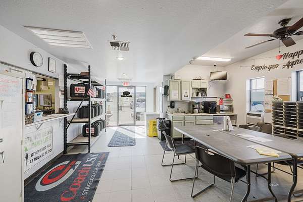 This versatile 11,615 SF industrial facility-plus 2,727 SF mezzanine-is ideal for service, logistics, or light manufacturing operations. The building features four 14-ft tall pull-through bays, a spacious shop area with ambient propane heat, and a dedicated pull-through wash bay. Office space includes nine private offices (one with a dedicated mini split system to accommodate server equipment, a conference room, receptionist/dispatch area, breakroom, and multiple restrooms. HVAC is powered by two furnaces and A/C units, with additional mini-split and window A/Cs. Property includes ~47 parking spaces (2 ADA) and sits on a septic system. The mezzanine rated for 125 lbs PSF. Ideal for owner-users or investors looking for an industrial asset with strong infrastructure and flexible space.