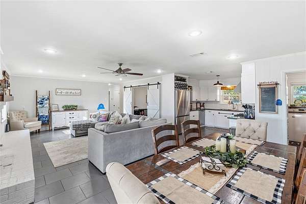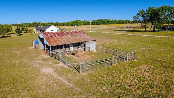 Welcome to your own slice of country living! This beautifully updated 3-bedroom, 3-bath home WITH an office offers the perfect blend of comfort, functionality, and true HOMESTEAD potential. Featuring two primary suites, the layout is ideal for multi-generational living or added flexibility for guests. Step inside to find thoughtful updates throughout, including a 2024 tankless water heater, an additional hall water heater, ceiling fans in every room, fresh paint, and a cozy wood-burning fireplace with hidden wood storage. The kitchen is well-equipped with a high-end oven with gas cooktop, refrigerator, and the laundry room offers built-in cabinetry for added convenience. A den AND living room to keep the kids well-entertained as well as the adults! Outside, the property is fully set up for country living with a full concrete driveway, covered attached two-car carport, and a combination of chain link and barbed wire fencing, along with partial electric fencing—ideal for a variety of animals including goats, horses, sheep, and more. The natural setting is highlighted by mature crepe myrtles, black walnut, and pine trees, adding both beauty and shade. Designed with functionality in mind, the land features multiple water access points throughout, making it well-suited for livestock or agricultural use. The 40x40 pole barn with power and water is positioned toward the back of the property, while the impressive 30x70 shop (30x50 enclosed) with electricity and two bay doors provides ample space for equipment, hobbies, or storage. Two additional sheds convey for even more utility. Enjoy peaceful country living surrounded by trees, pasture, and true East Texas beauty, with the added benefit of farm road accessibility and a corner tract location for easy access. Whether you’re looking to start a homestead or simply enjoy wide open space, this property is ready to meet your needs. Property is HS and Ag exempt!