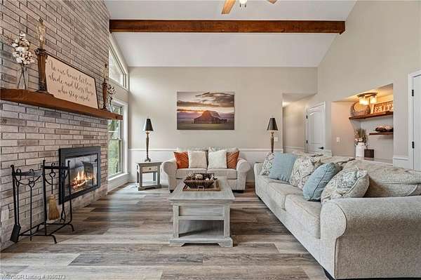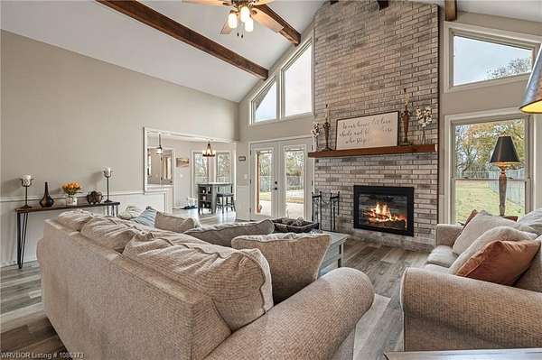 Beautiful home situated on just over 5 acres. It features 3 bedrooms and 3 full baths, plus a second living area that's perfect for a large office or flex space. Enjoy a stunning vaulted ceiling and an abundance of windows that fill the home with natural light. The entire home has fresh paint, new flooring, large laundry room, all new interior and exterior doors, new light fixtures, and updated plumbing fixtures and vanities. Quartz countertops are featured throughout, along with a completely remodeled master bathroom. Additional updates include a new backyard fence, all new windows installed in 2022, and new window treatments added in 2025. The basement is ideal for hobbies and also serves as a safe room. And that's not all-the views are absolutely amazing! This property truly has so much to offer.