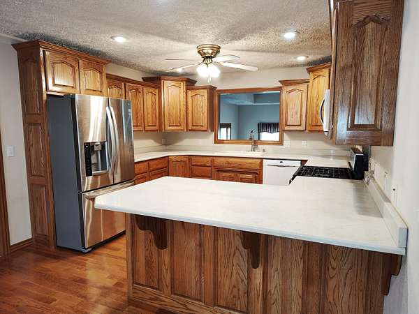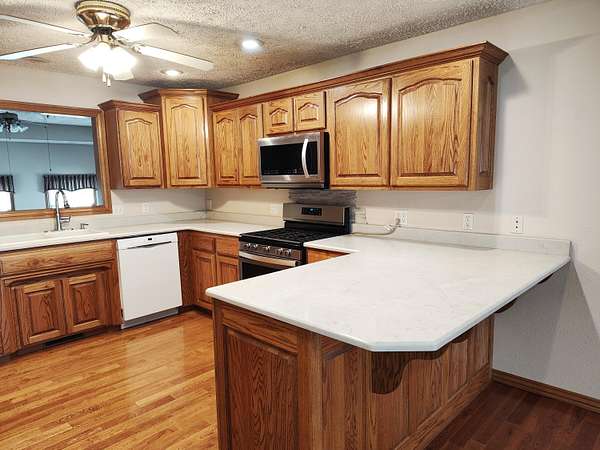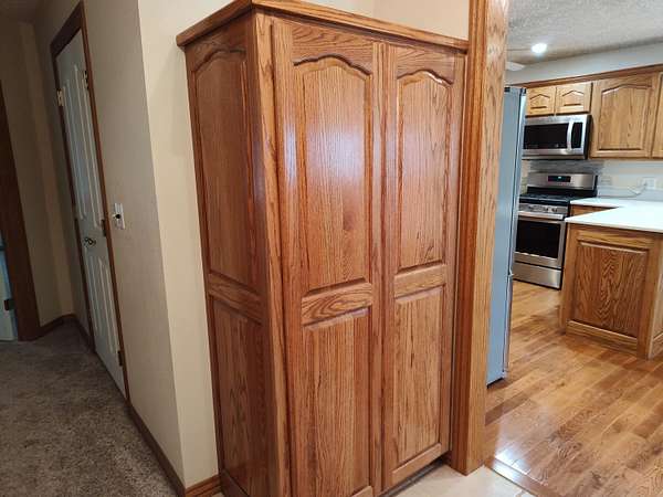 - Dishwasher, Disposal, Dryer, Electric Water Heater, Free-Standing Propane Oven, Microwave, Refrigerator, Washer, Water Softener Owned