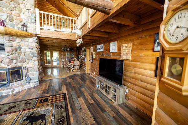 Experience unparalleled craftsmanship and rustic elegance in this stunning 6,557 sq. ft. (5,995 sq. ft. finished) log cabin, nestled in a serene and picturesque setting. Boasting 4 bedrooms, 4.5 baths, and an array of premium features, this home was built with no shortcuts and all the extras. Including a brand new in-ground, electrical thermostat/heated pool surrounded by a concrete entertainment area with fire pit! Whether you're seeking a luxurious primary residence, a vacation retreat, or an investment property, this one-of-a-kind cabin delivers.Interior Highlights