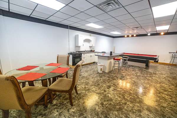 The expansive basement is an entertainer's dream, complete with a second kitchen, bar, living area, and an Olympic-size pool table. Additional features include a 1960s/1970s-themed full bathroom, a bedroom, utility room, and two storage rooms. Brand new vinyl flooring in half the basement!